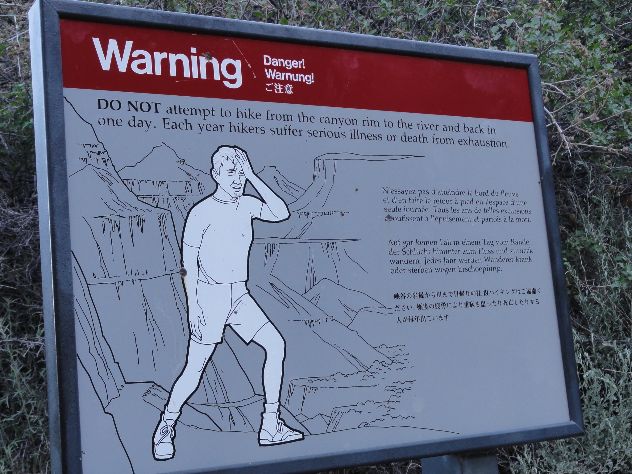 ![]() 17 Yep, I pretty much feel like that guy right now. I wonder what the warning sign for "DO NOT attempt R2R2R in one day" would look like? |