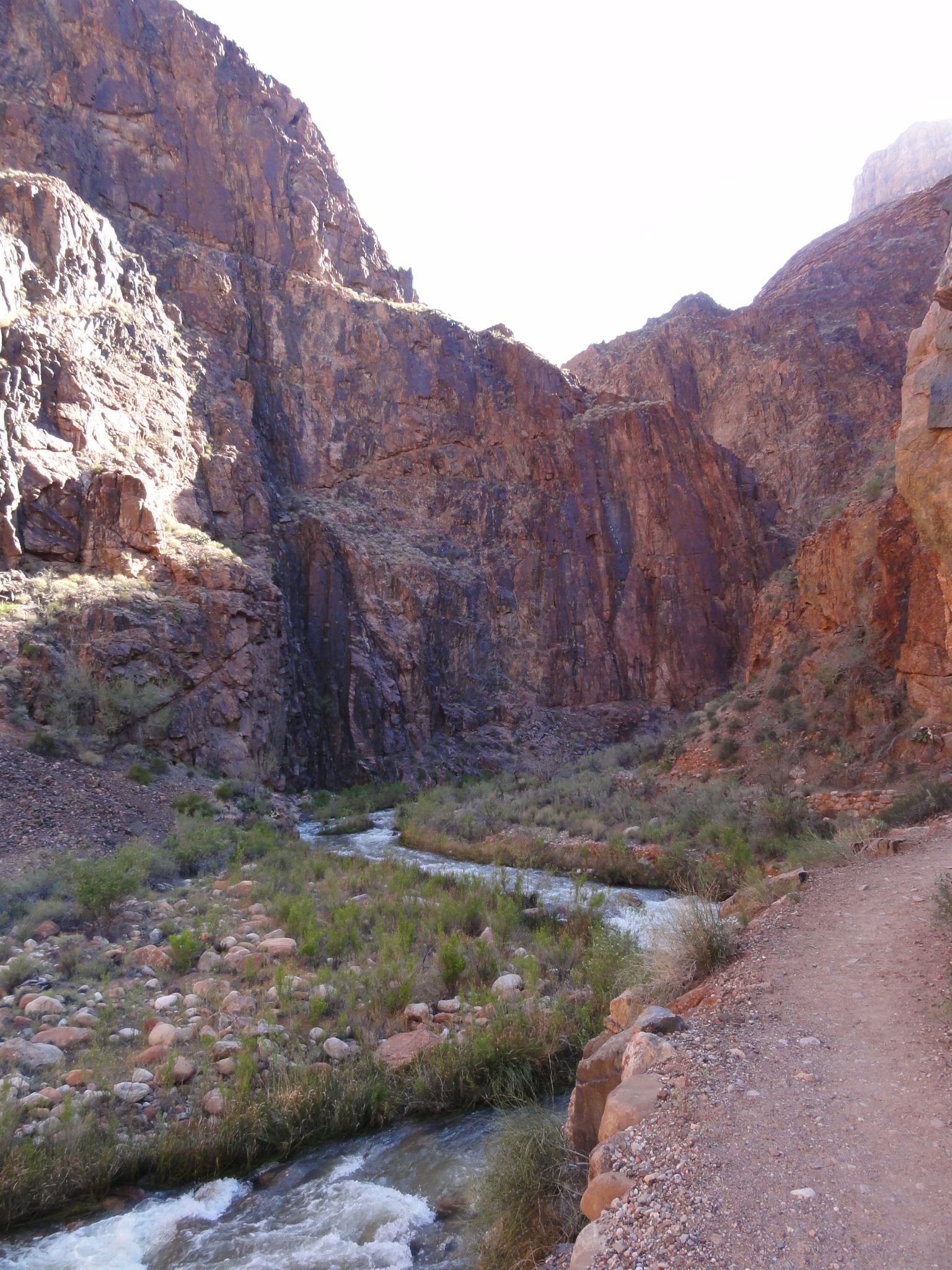 The South Kaibab trail transitions into the North Kaibab trail at the Colorado River where Phantom Ranch is located. Just past Phantom Ranch is a narrow gorge known as The Box, which has some of the best scenery in the entire canyon.