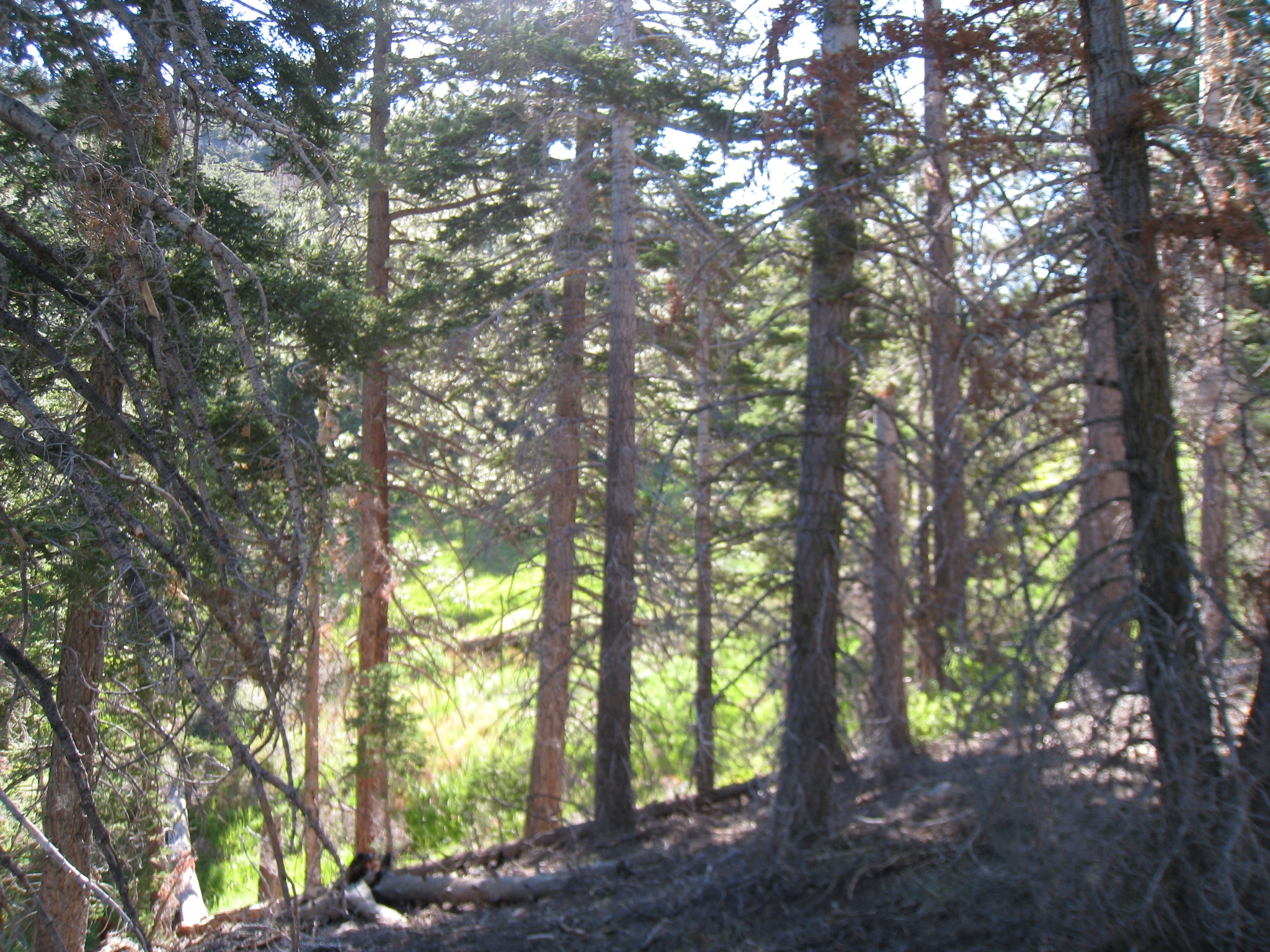 4 The early morning sun filtering through the trees below Fish Creek Saddle.