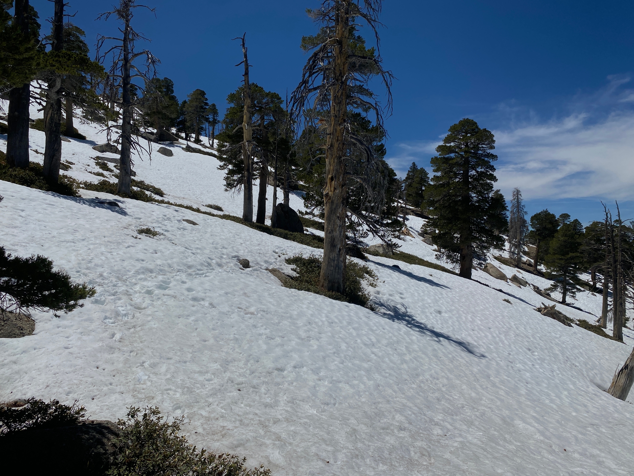 1 Heading up the San Bernardino Peak trail. It's a warm day, so I know the snow is going to be slushy. If it's too deep, then I probably won't be able to summit.
