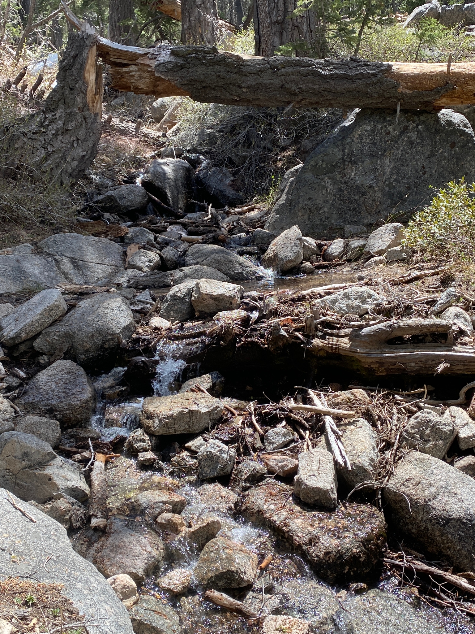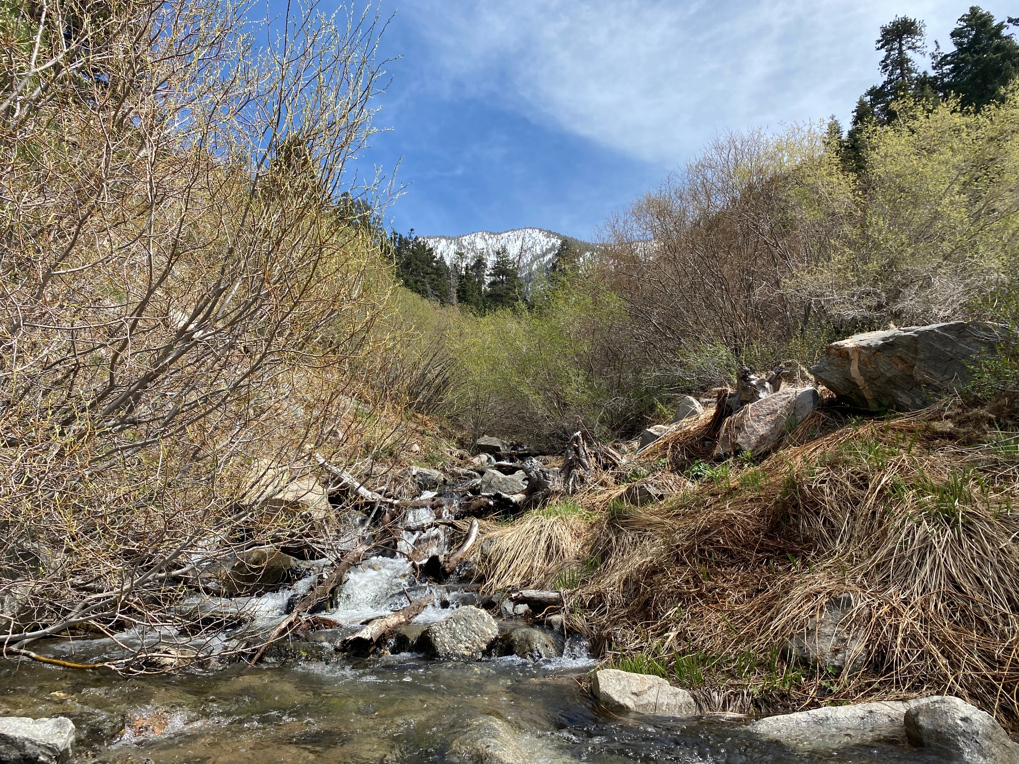 5/7/20 Almost 17 miles and 4,500' of gain up the San Bernardino Peak trail. There was too much slushy snow for a summit, so I tried some great new trail to Columbine Springs and Forsee Creek instead.