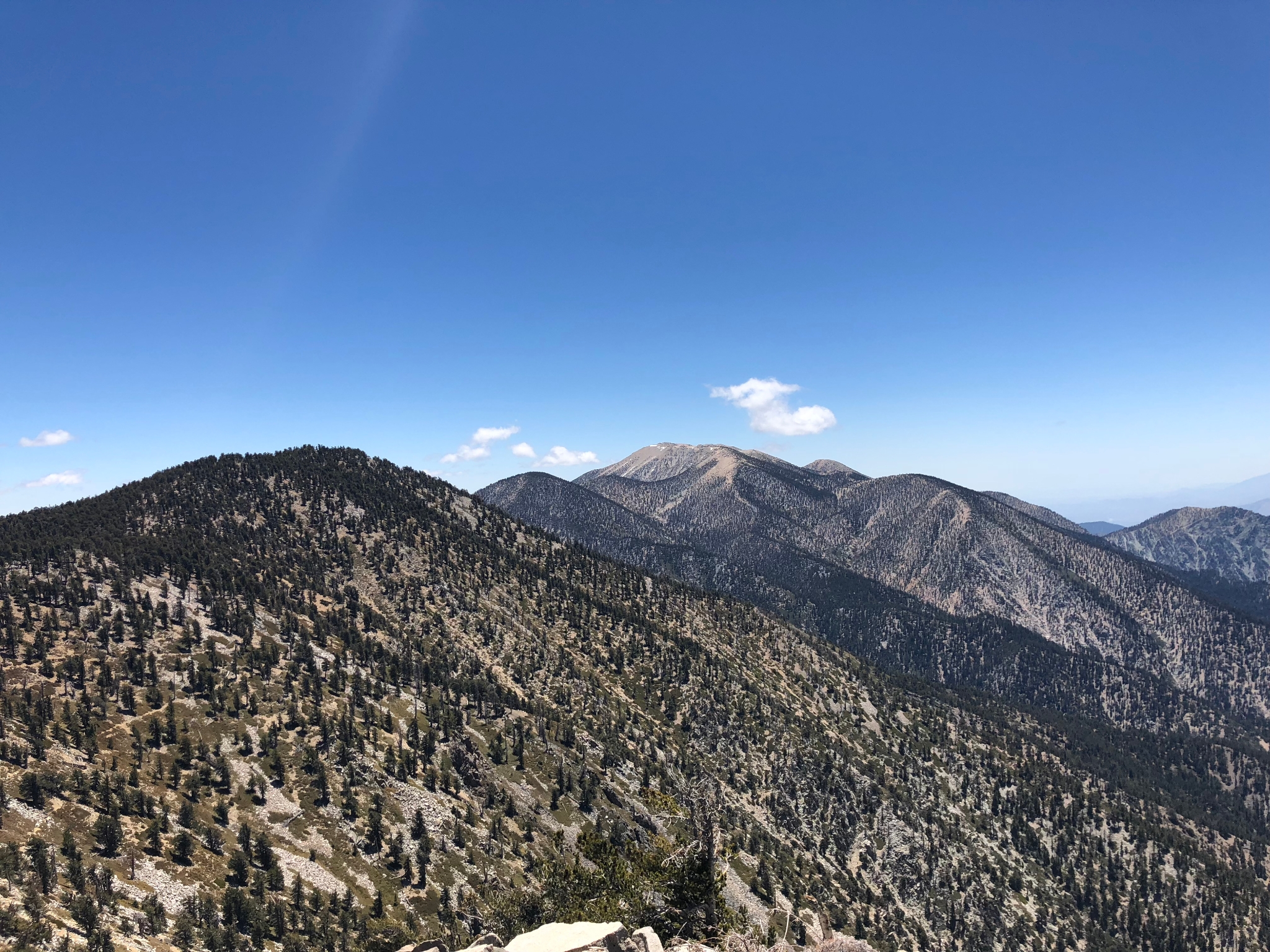 17 Looking back at East San Bernadino. The 9 Peak Challenge includes nine peaks on the ridgeline leading up to San Gorgonio that are all above 10,500'. The challenge is to bag them all. Most people do it as a multi-day backpacking trip. I'm trying to see how many I can bag in one day.