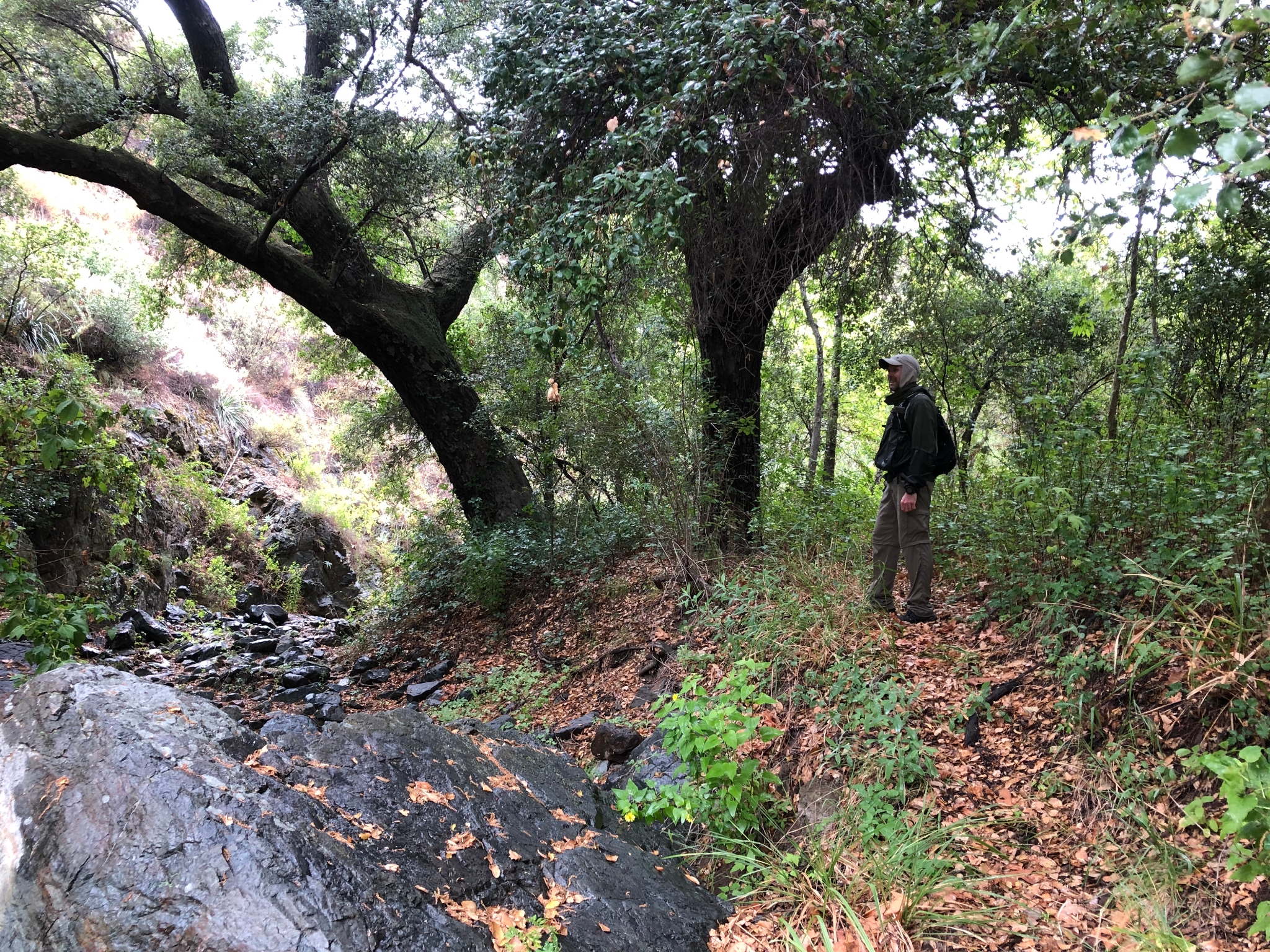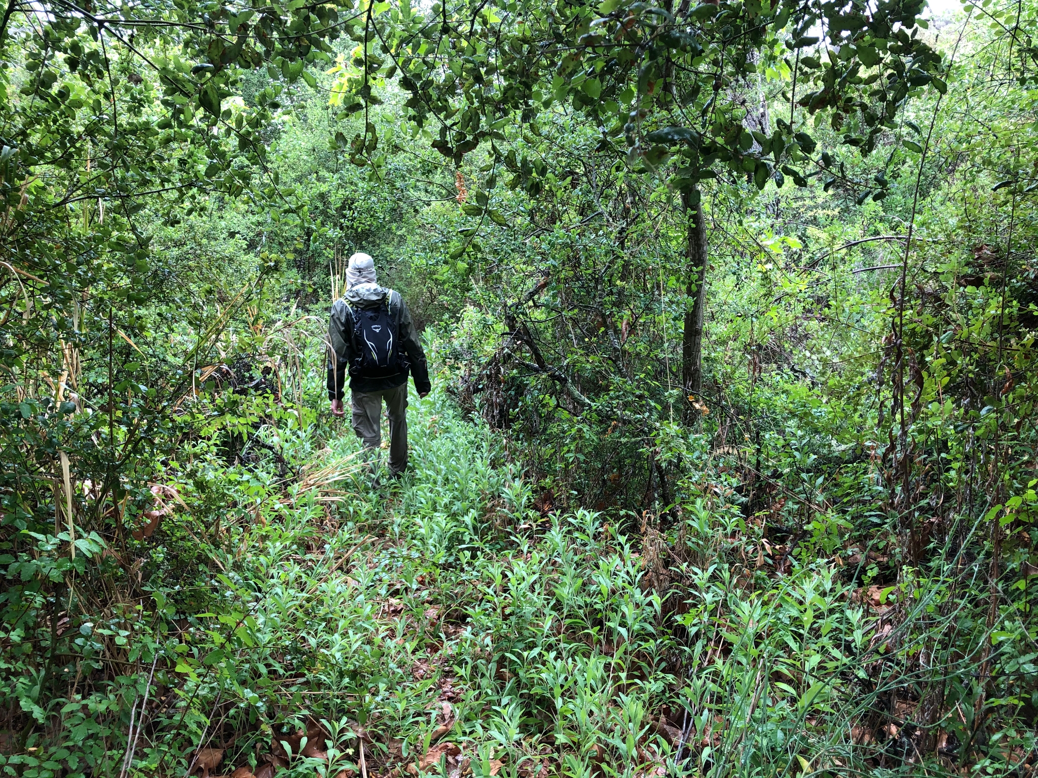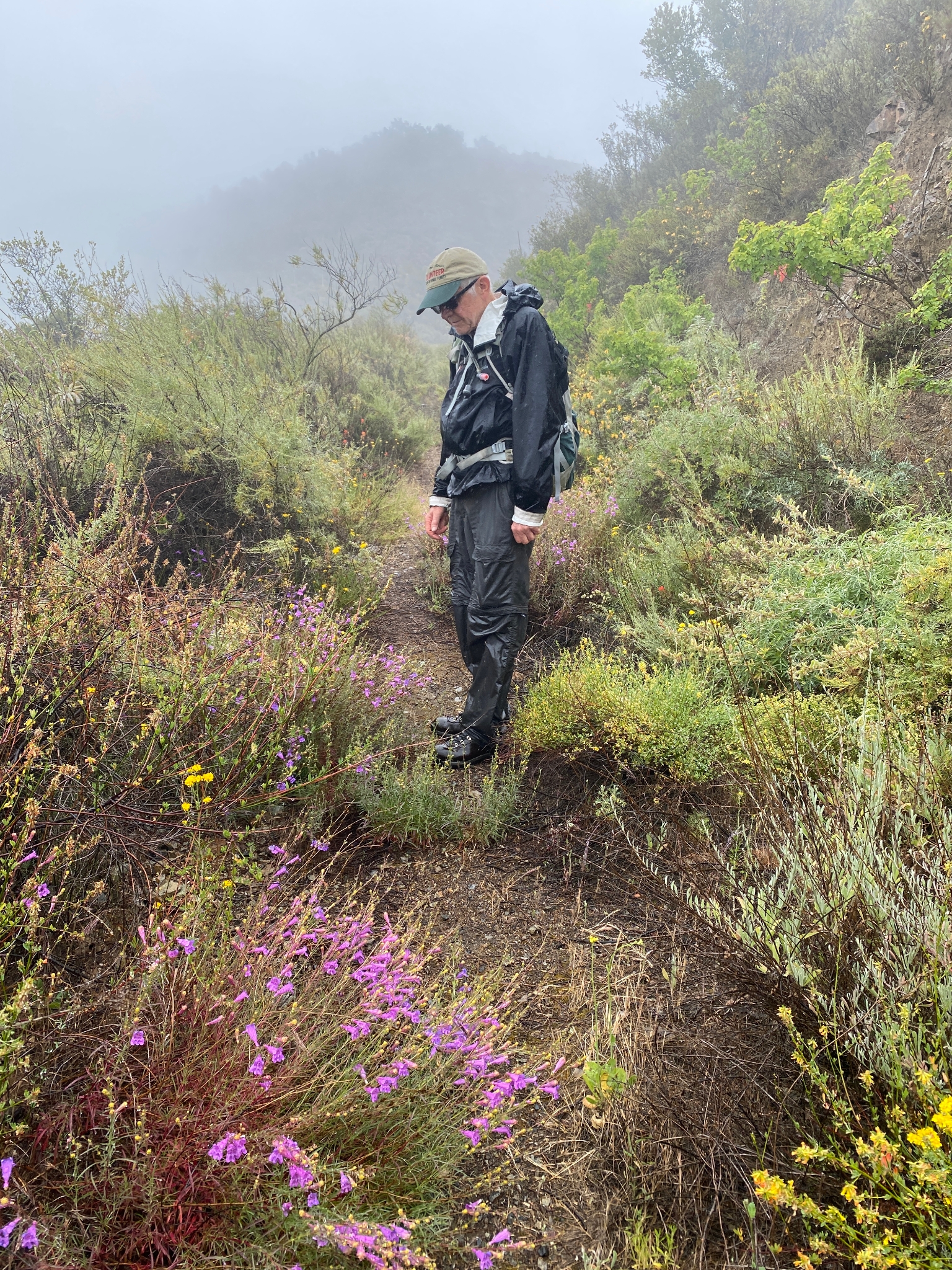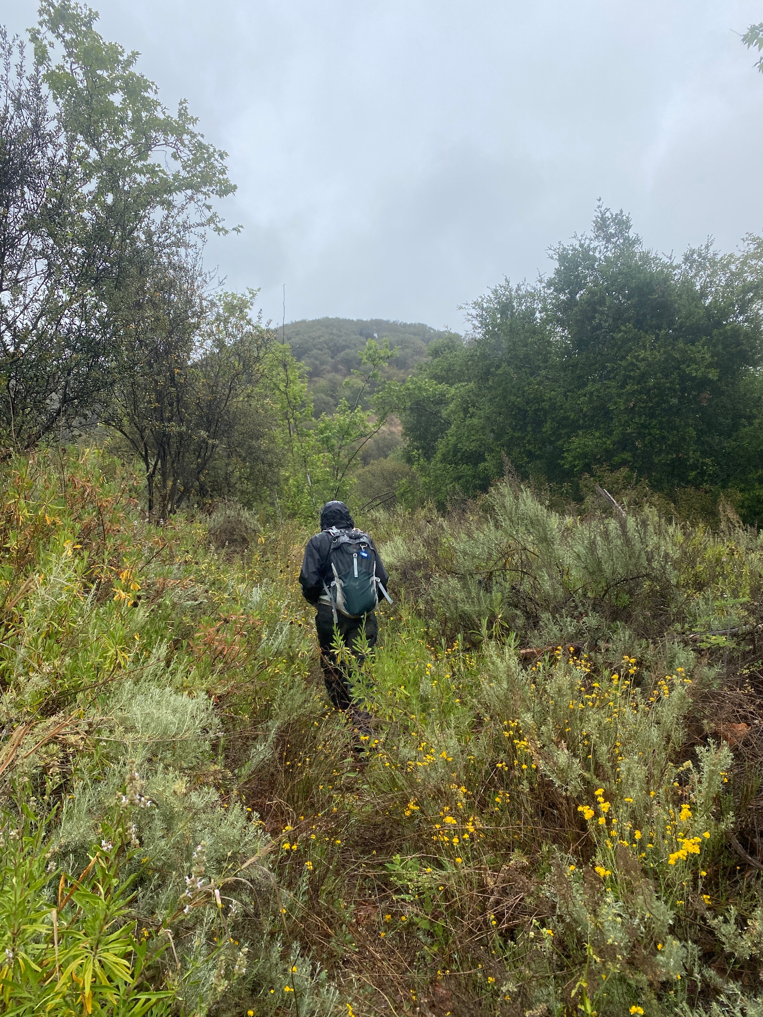 5/16/21 About 11 miles down the closed Lucas Canyon trail on a cold, rainy day. The weather, combined with overgrown trail, made for a most excellent adventure.