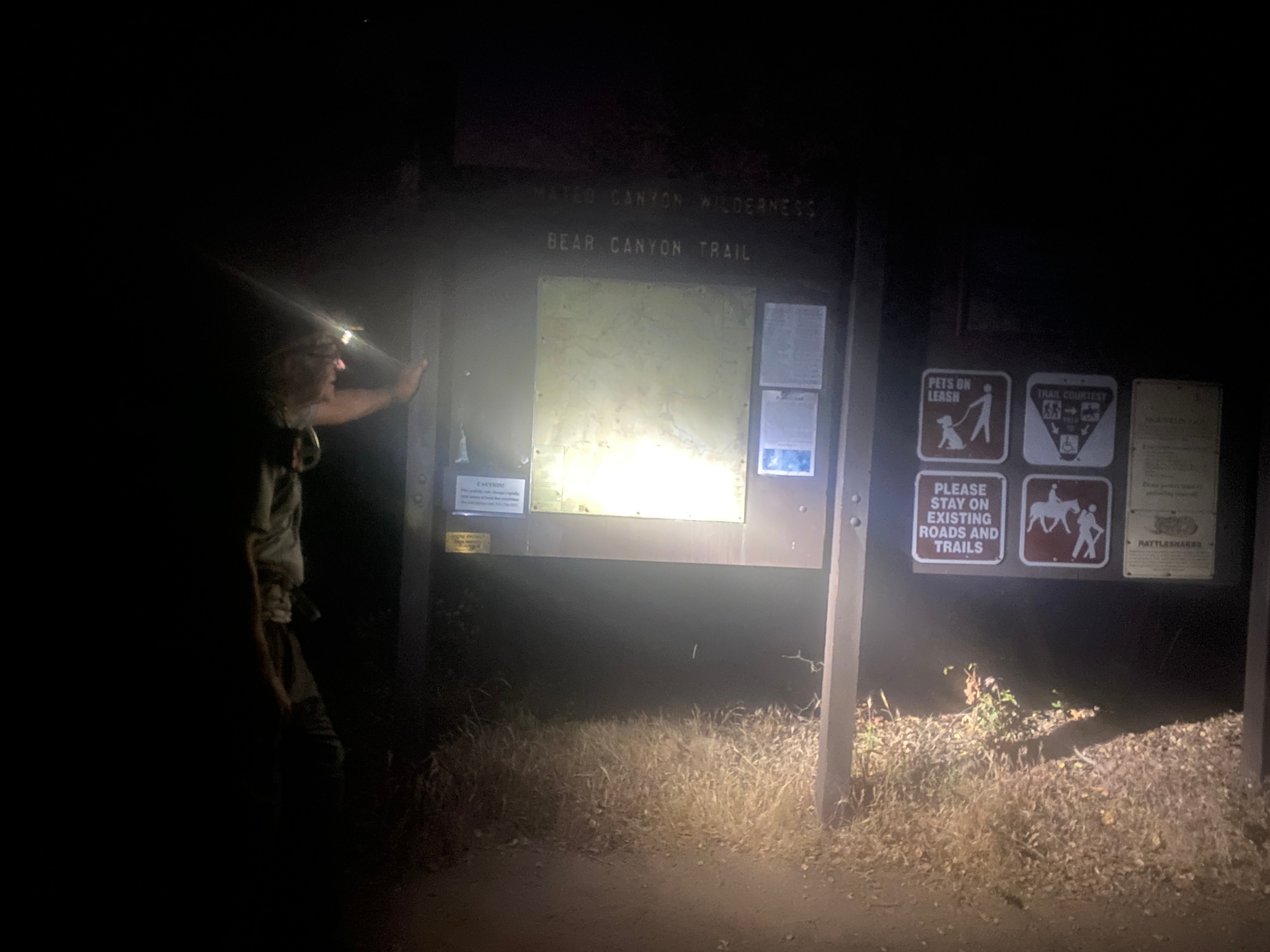 1 Getting ready to start the day at the Bear Canyon trailhead. Our goal was to take Bear Canyon to Verdugo and then down Lucas Canyon to find the spot from the other side where we lost the trail a few weeks ago.