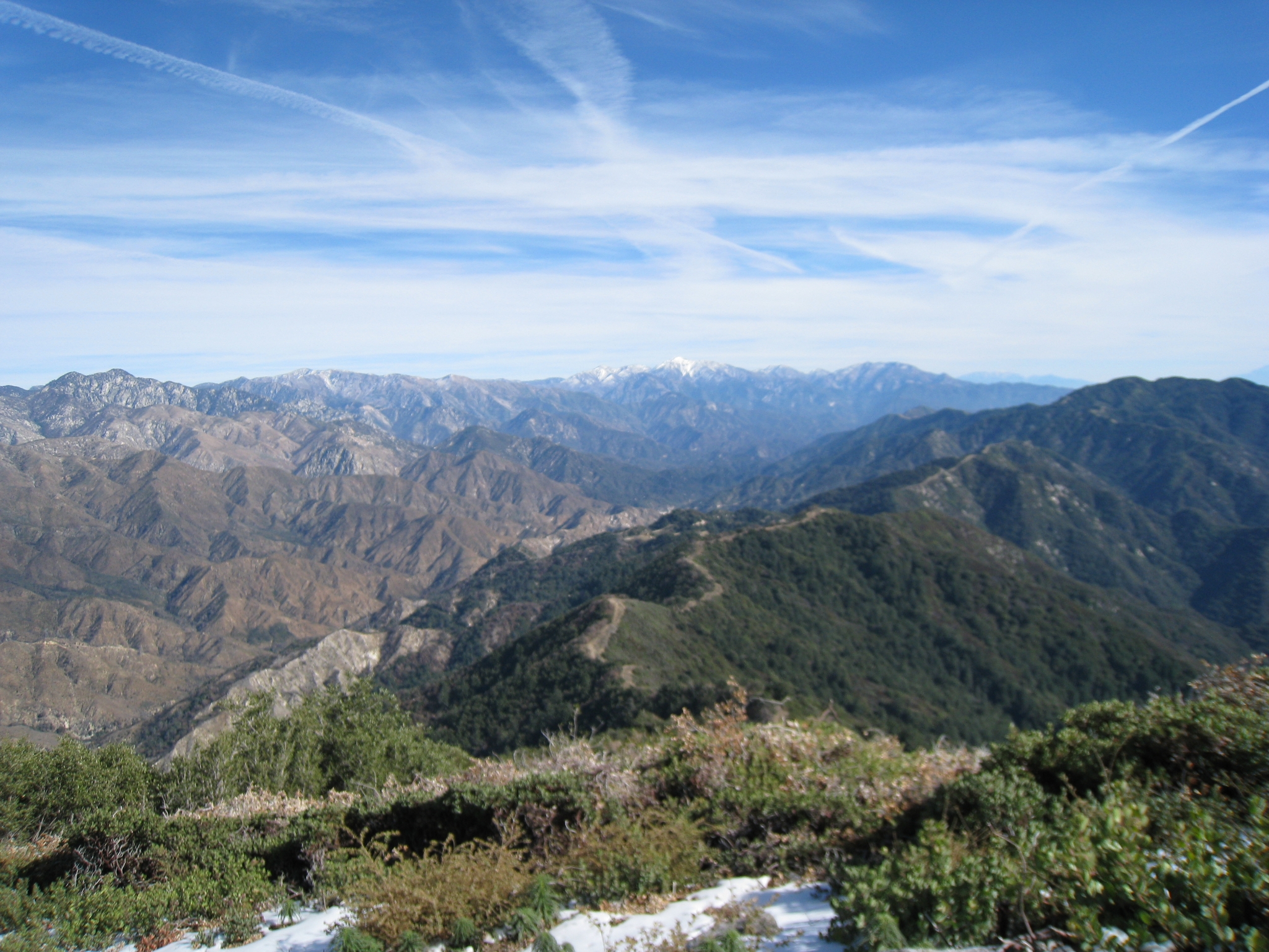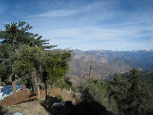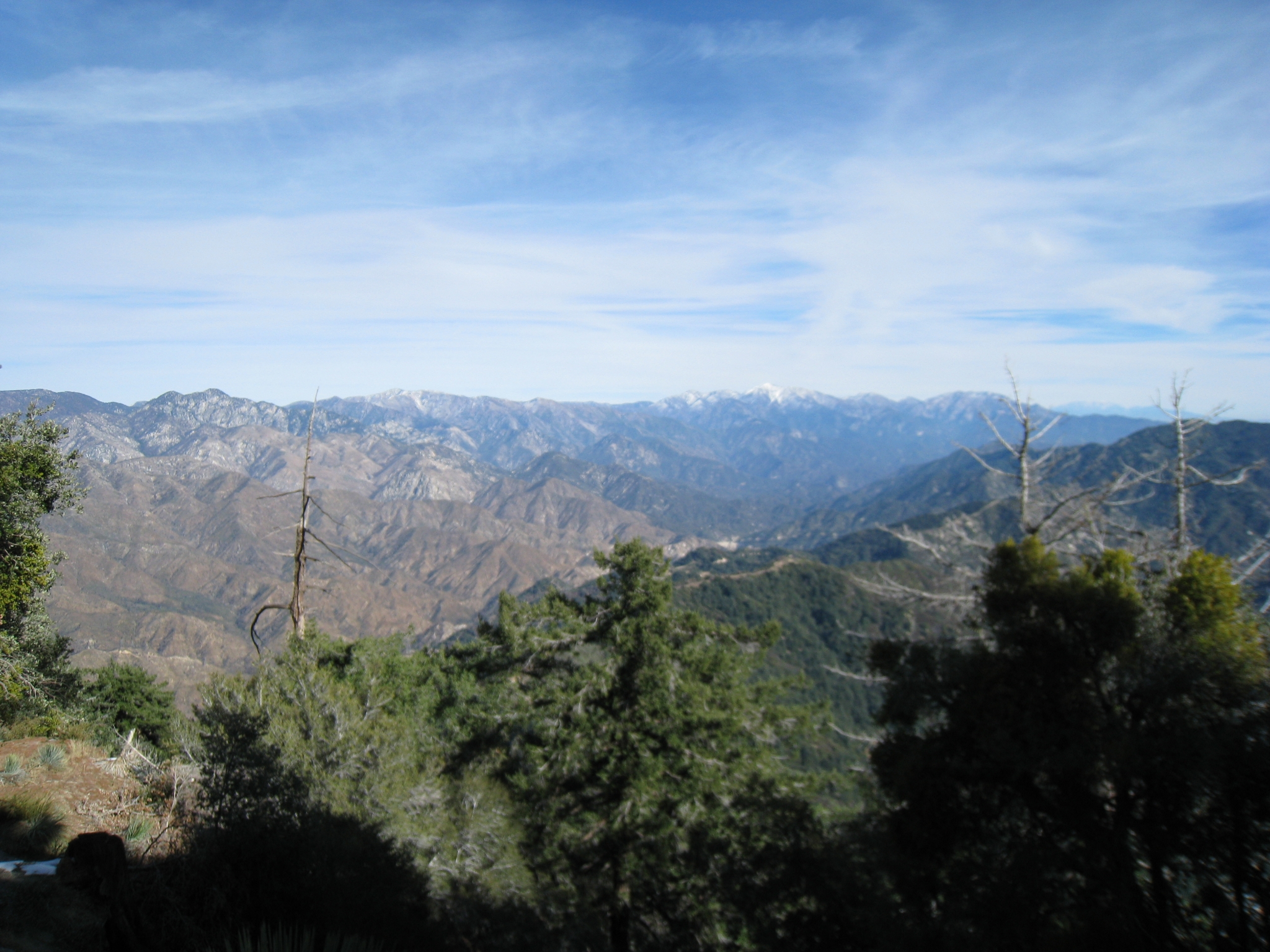 39 Just short of the summitt, the trail hits a vista point (marked with a sign that says "Vista Point"). This might be my favorite Southern CA view so far. You can clearly see Baldy, San Gorgonio, and San Jacinto. The Big 3 all in the same picture. Probably not too many places you can get that. The camera loses the detail of the snow on the far peaks, but you can clearly see it in person. Had I come up the shorter route, I probably wouldn't of come to this spot at all.