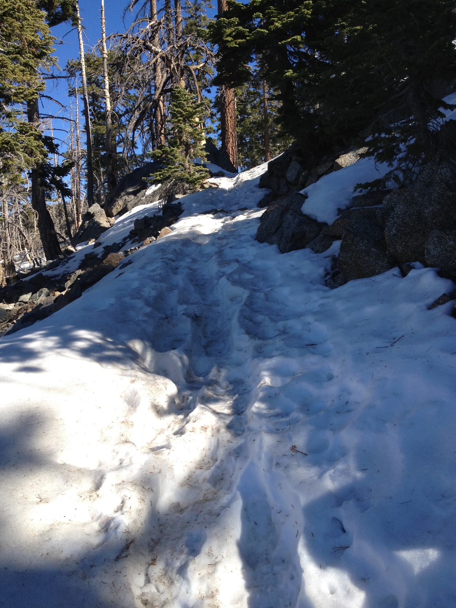 13 After leaving Mt. Islip, the trail drops to the shady side of the ridge and the snow starts getting heavier.