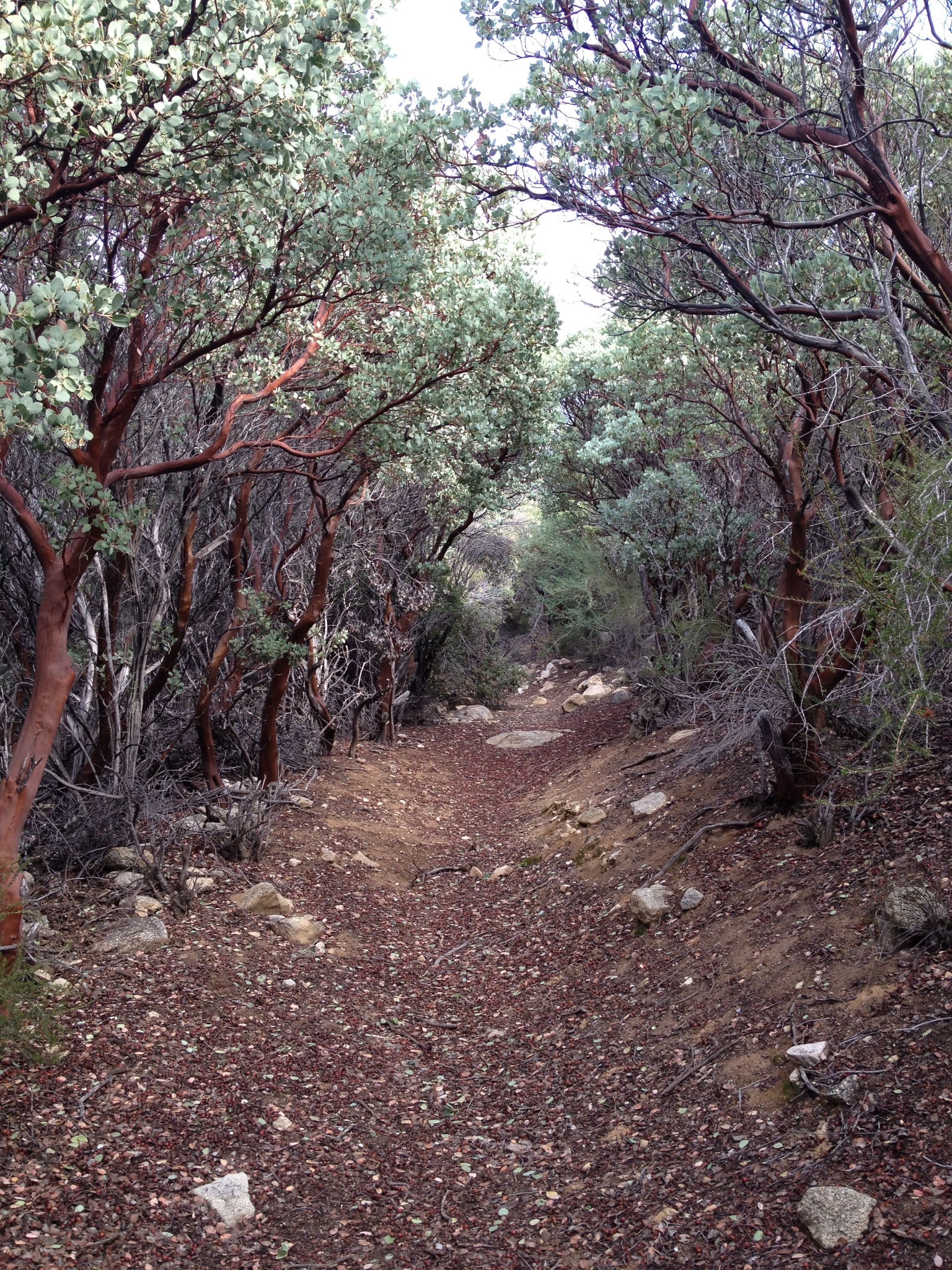 23 An awesome section of trail on super spongy dirt through a chapparal (giant manzanita?) forest.