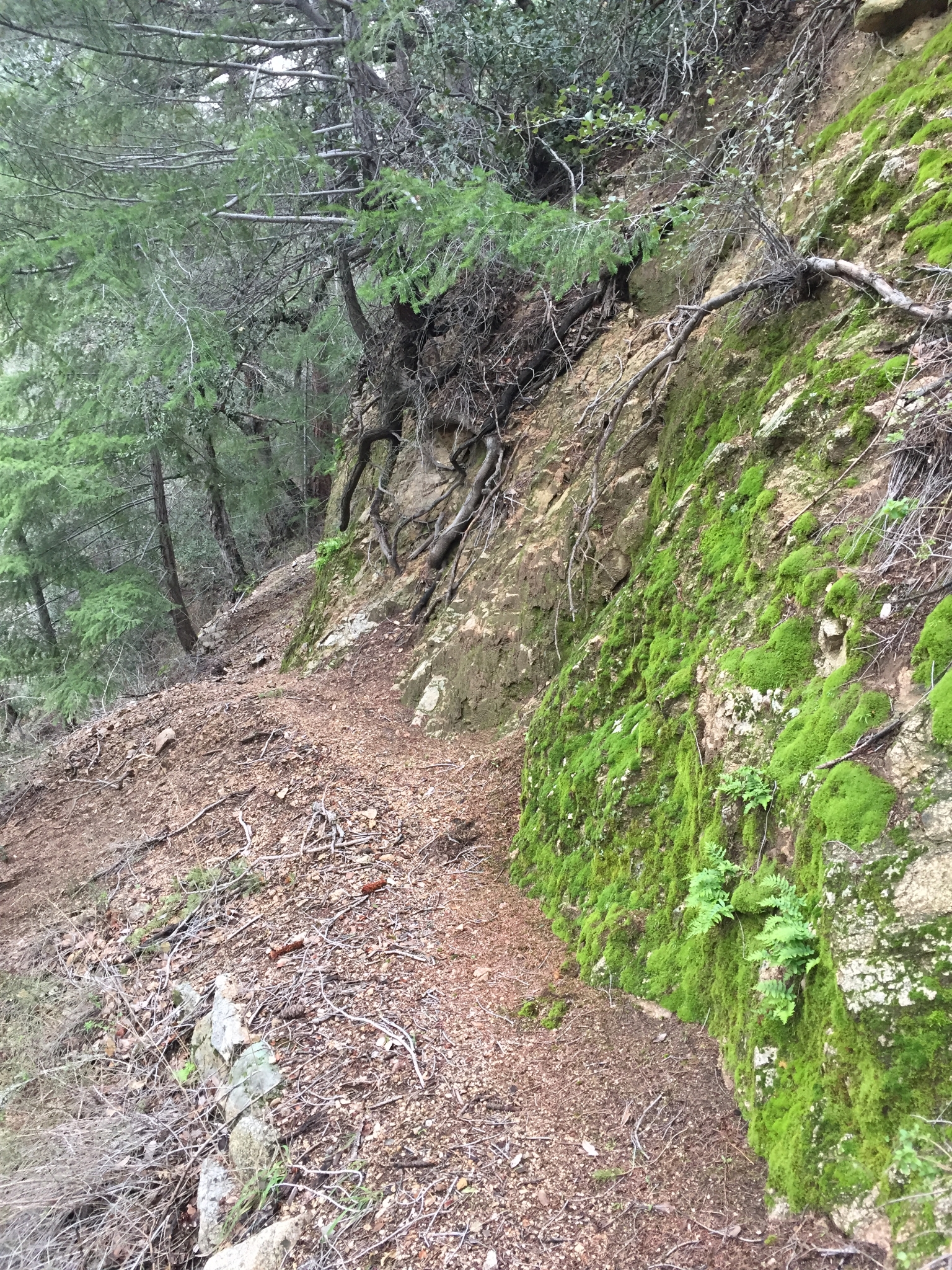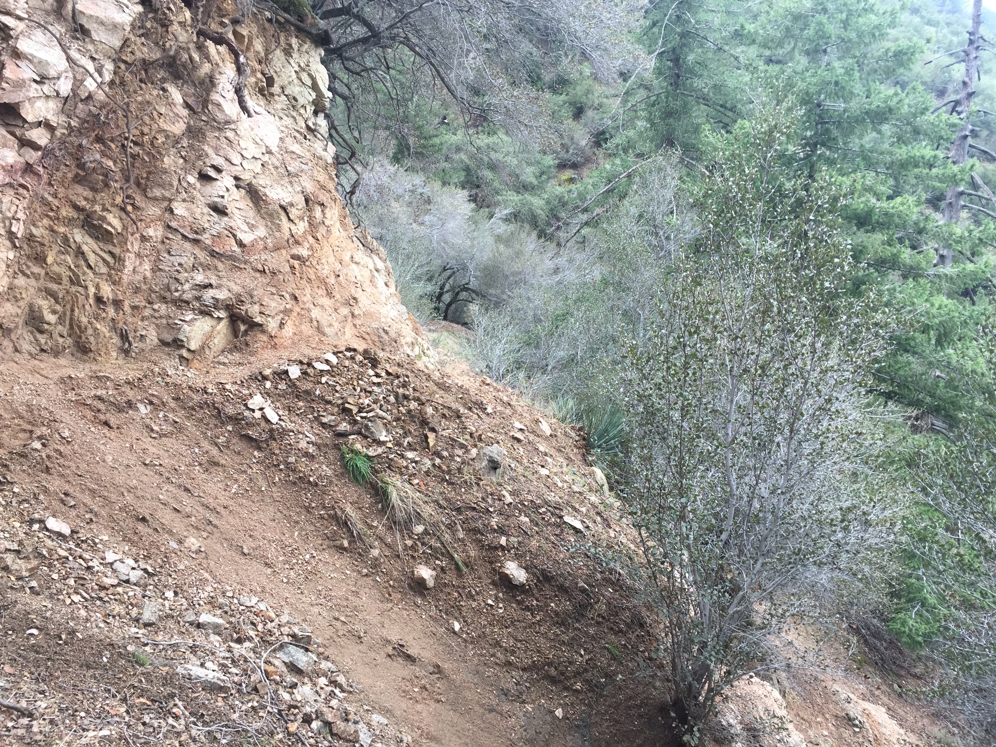 20 Almost entirely washed out in places, no more than a foot wide, with a steep drop off. Just my kind of trail!