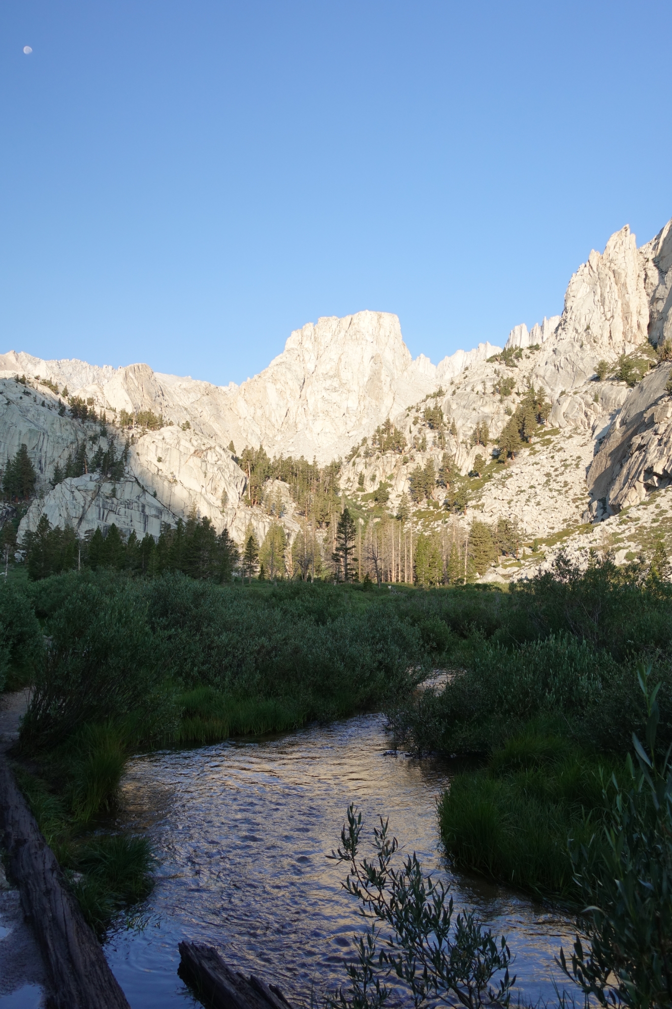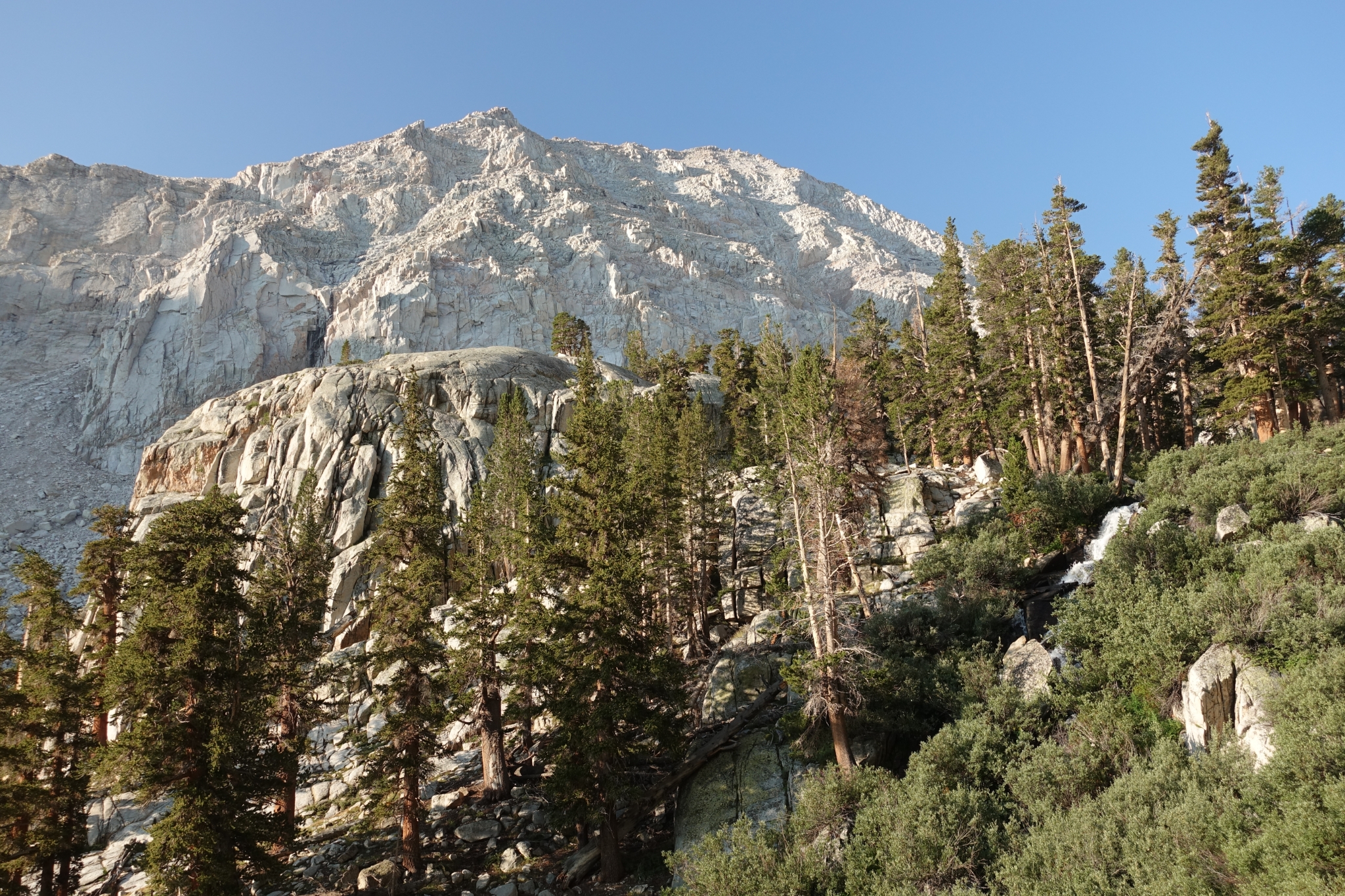 3 Heading up the canyon in the early morning light. First view of the impressive cascades of Lone Pine Creek.