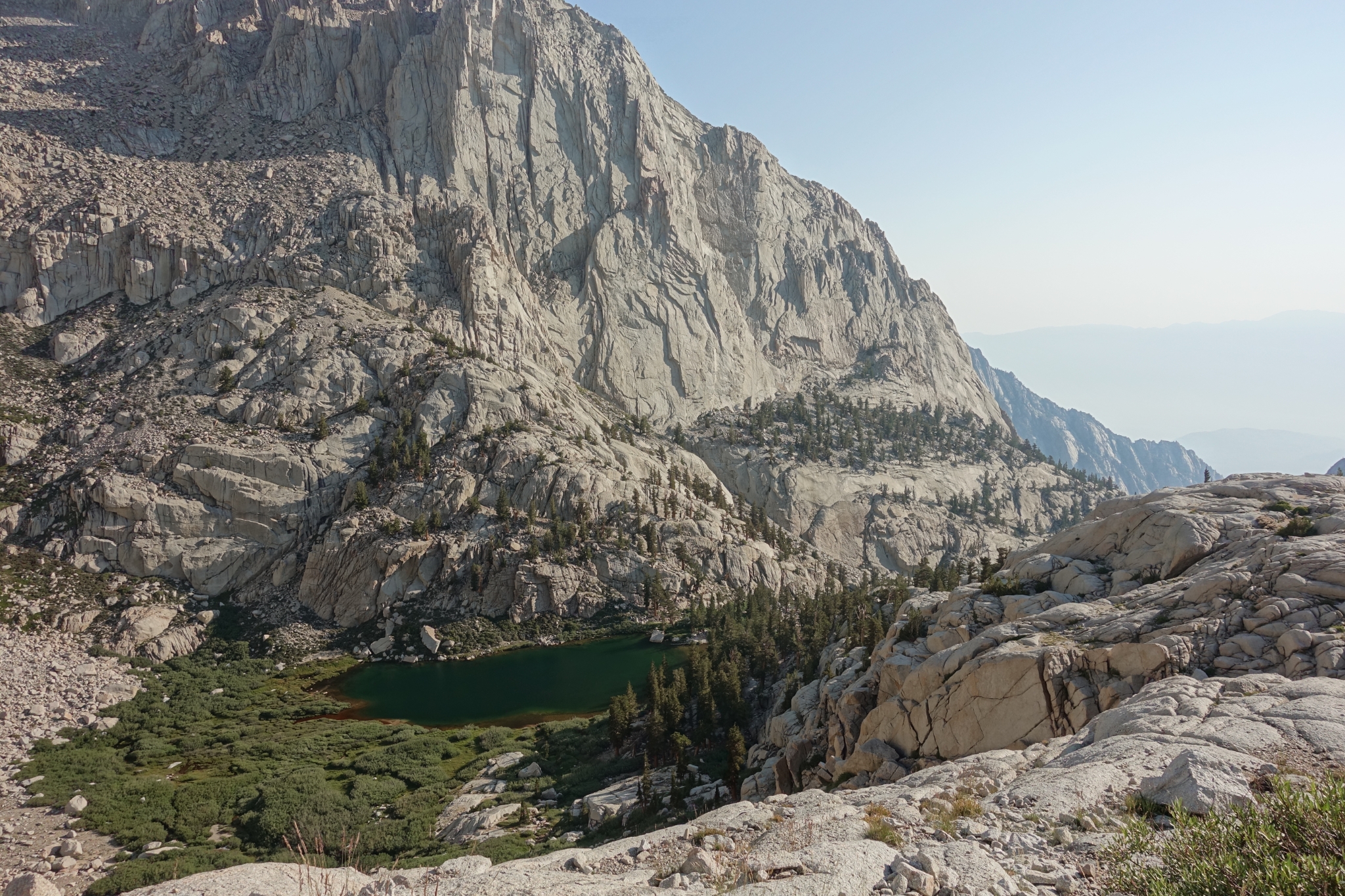 8 Looking down at Lone Pine Lake still early in the morning. I've been making great time so far.