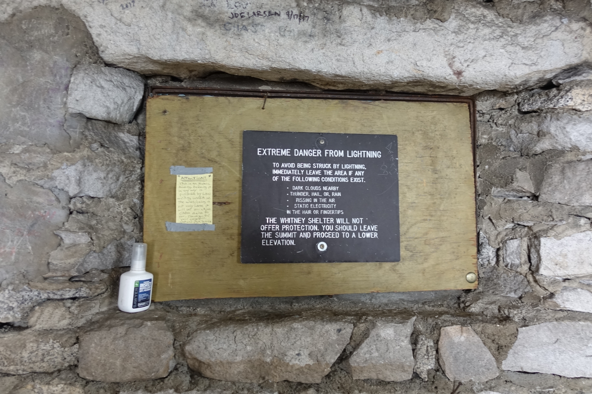 38 The sign in the cabin doesn't give me much confidence in staying on the summit for long. The dark clouds are already coming in, thunder in the distance has already started, and the first drops of rain are starting.