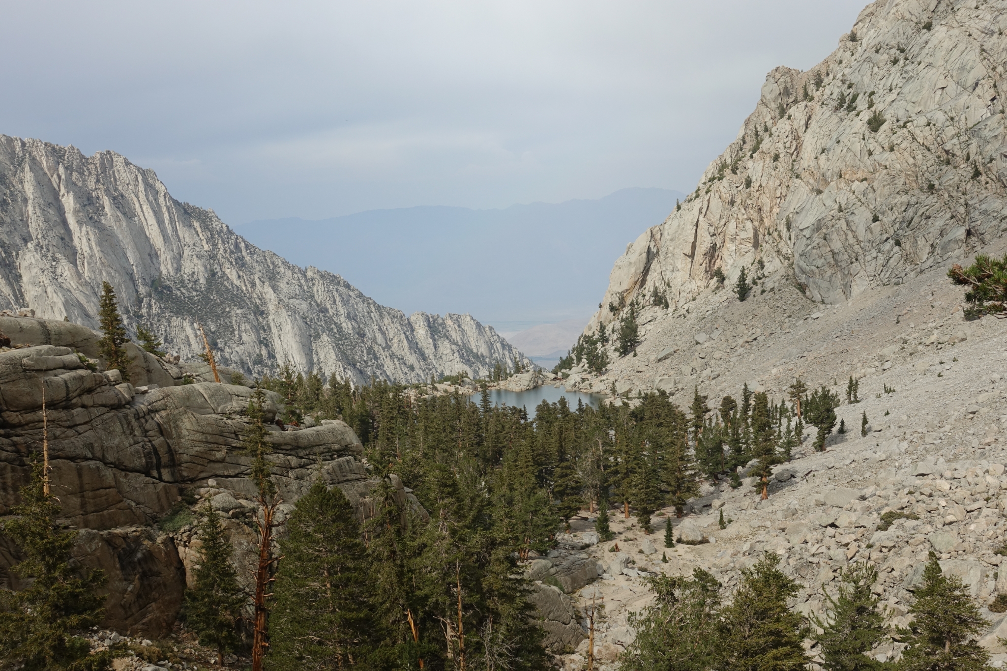 18 Looking down at Lone Pine Lake and the meadows now far below.