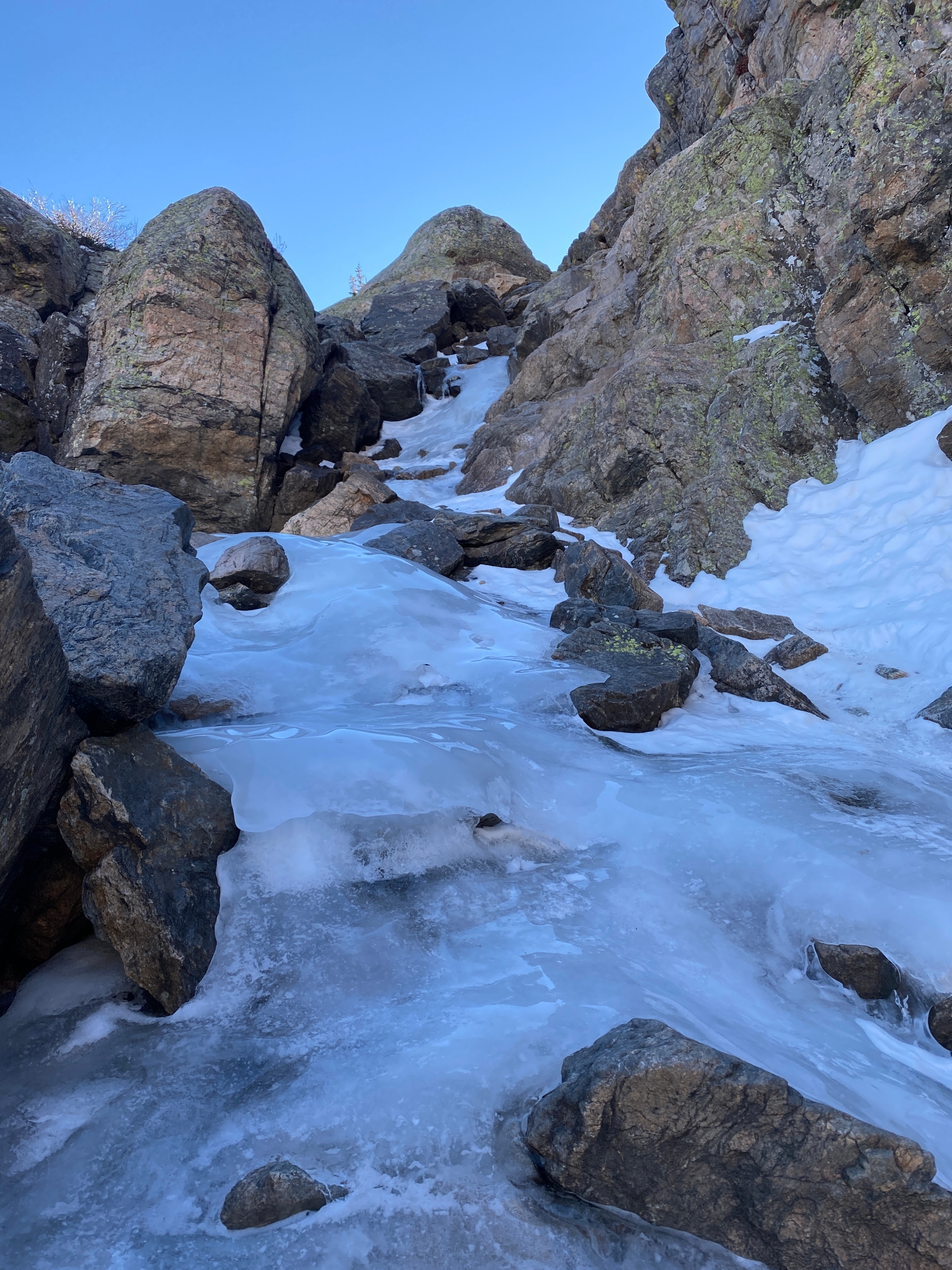 3 Made it to Alberta Falls. Normally this would be a roaring cascade flowing from right-to-left, but it's almost entirely frozen over.