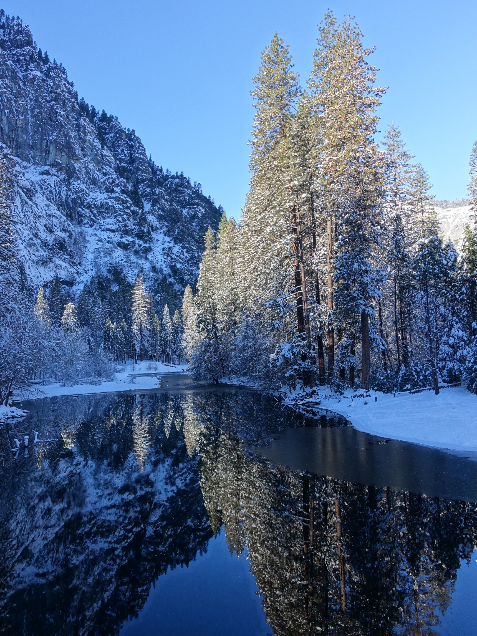 8 The Merced River as calm as I've ever seen it. Making for some great reflections together with the intermittent patches of ice.