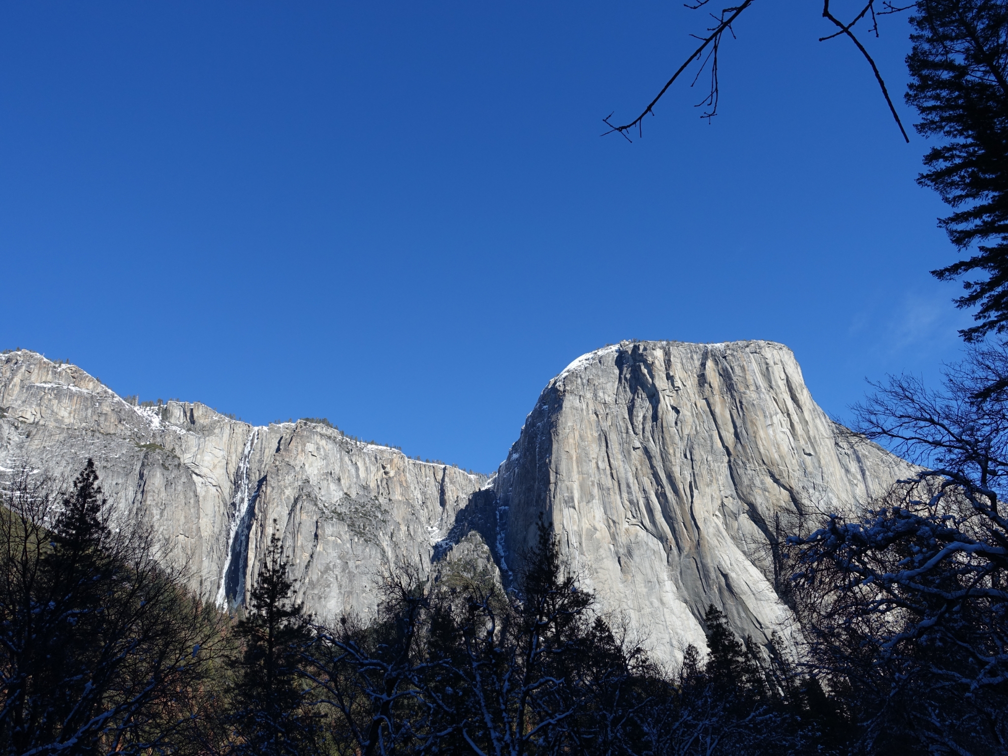 20 Back down to the Valley floor. Here's El Captian with Ribbon Fall to the left. There must have been at least a little water flowing over the normally dry fall since there's a snowy mist similar to Yosemite Falls.