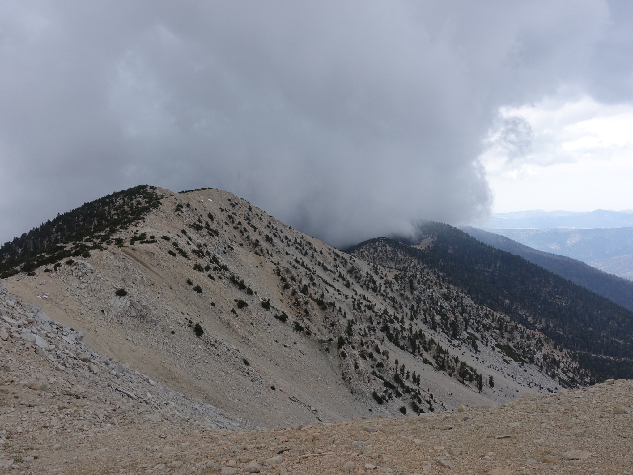 35 Back down and around Jepson Peak. Pretty cool how the storm slams up against the ridge.