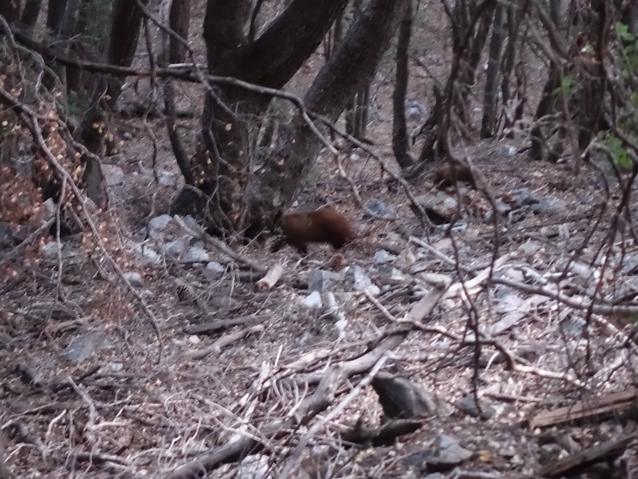 52 I was never alarmed at all except when I saw it had a cub following along behind it. Blurry here because of the dim light in the woods. I decided not to press my luck, and moved on. Figures that I end-up seeing a bear after someone on the summit asked me if I ever saw bears around here, and I said "Nah".