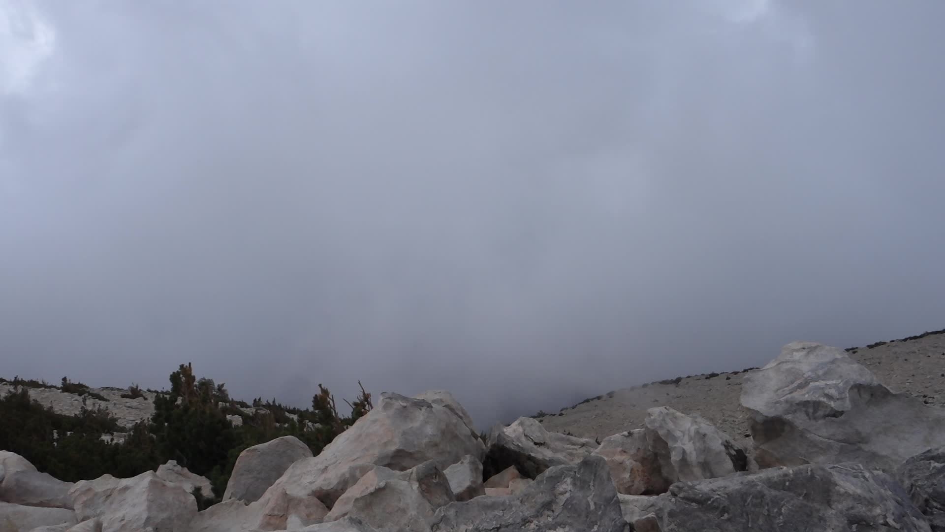36 Visibility starts to drop on the trail and there's rain and hail for a while.