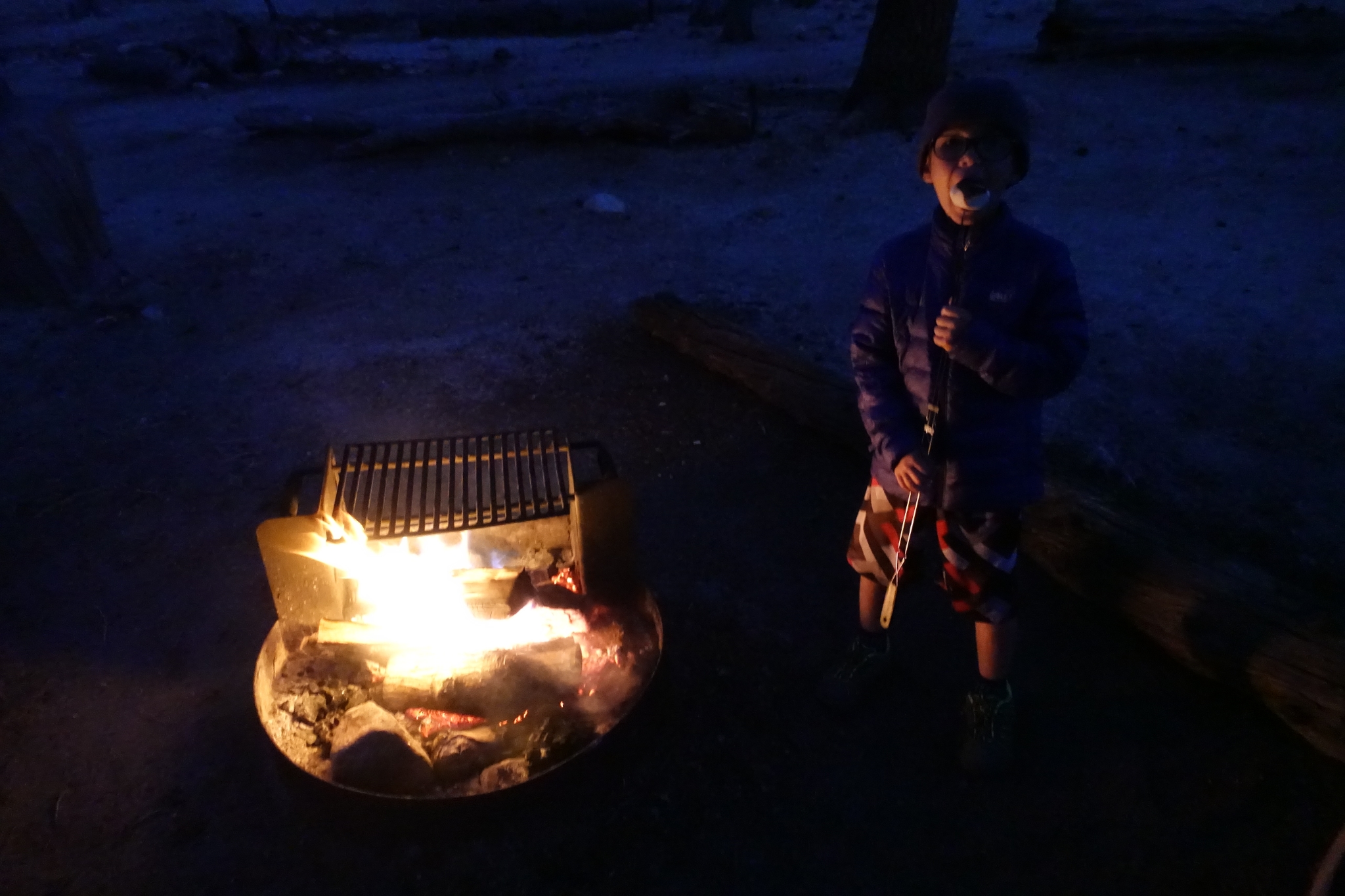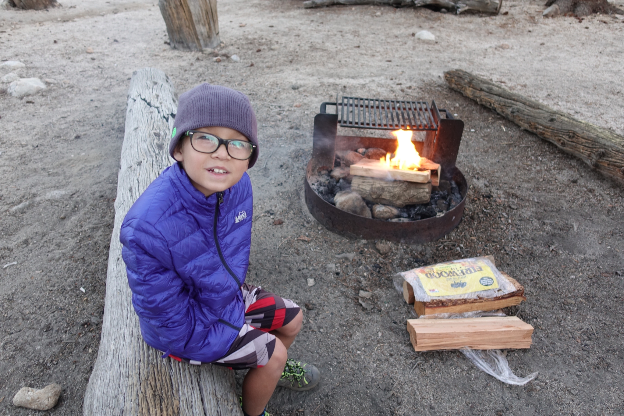 8/26/18 The first night, we drove up to the Cottonwood Lakes walk-in campground to acclimate at about 10,000'. It was Aidan's first chance for a campfire and to sleep in a tent.