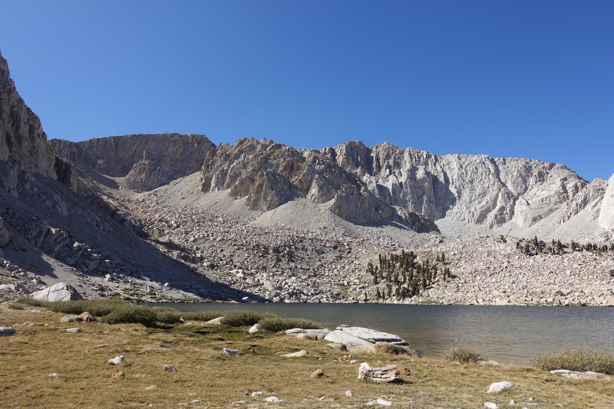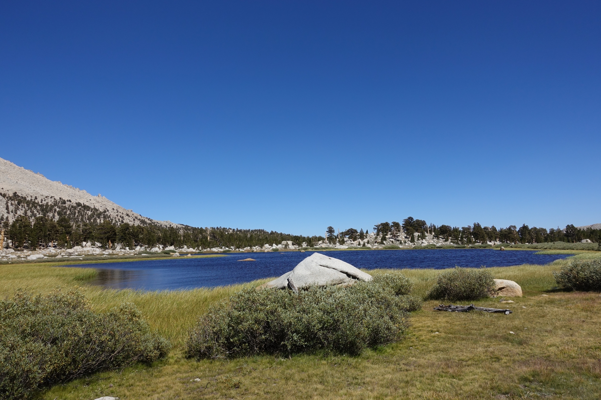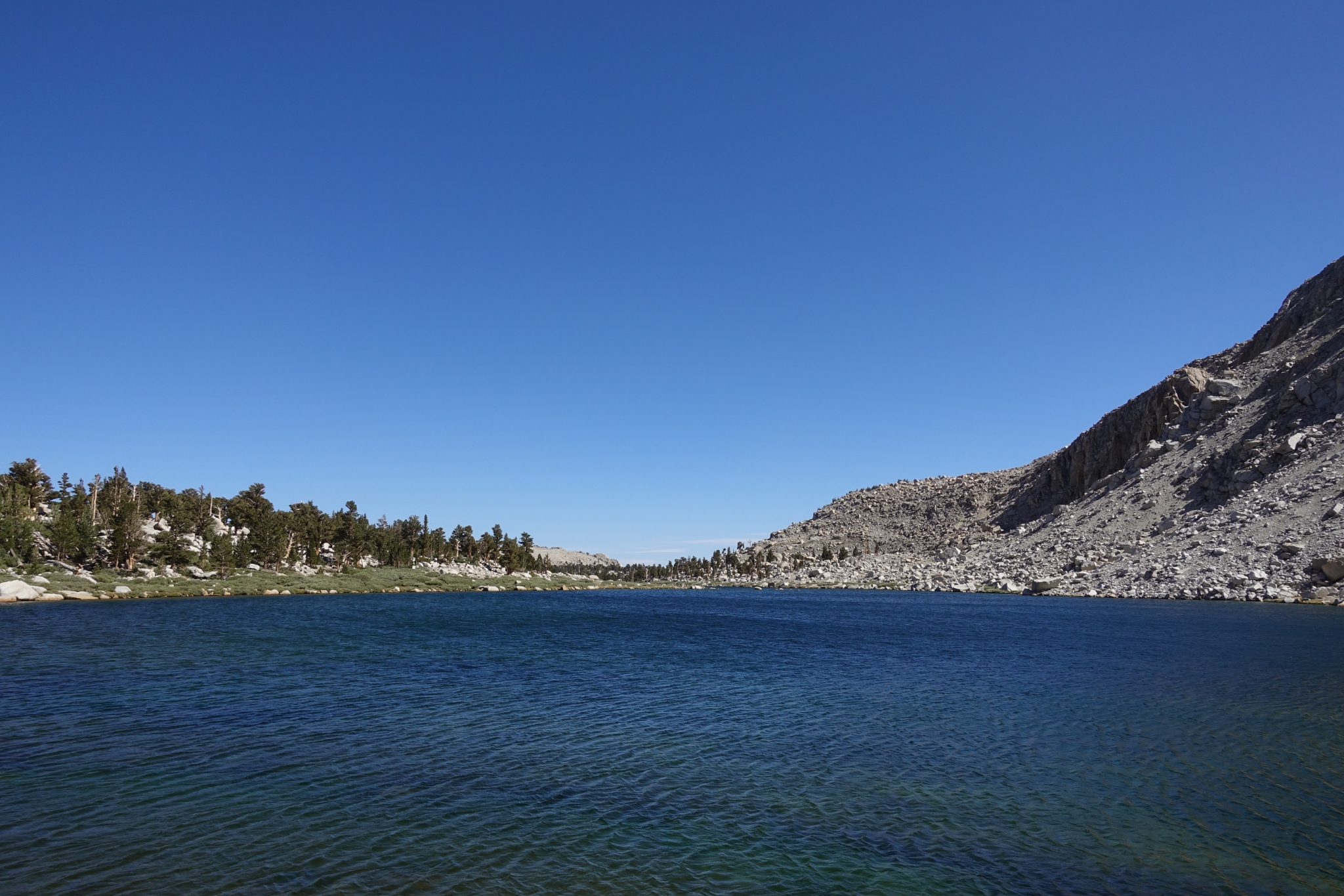 26 The Northern corner of Lake 5 from our tent. After the last couple hikers passed by, we would have all of Lakes 4 & 5 to ourselves for the entire night. Unbelievable it's still possible in California to be in such a beautiful spot, during peak season, on a beautiful day, and have complete solitude.