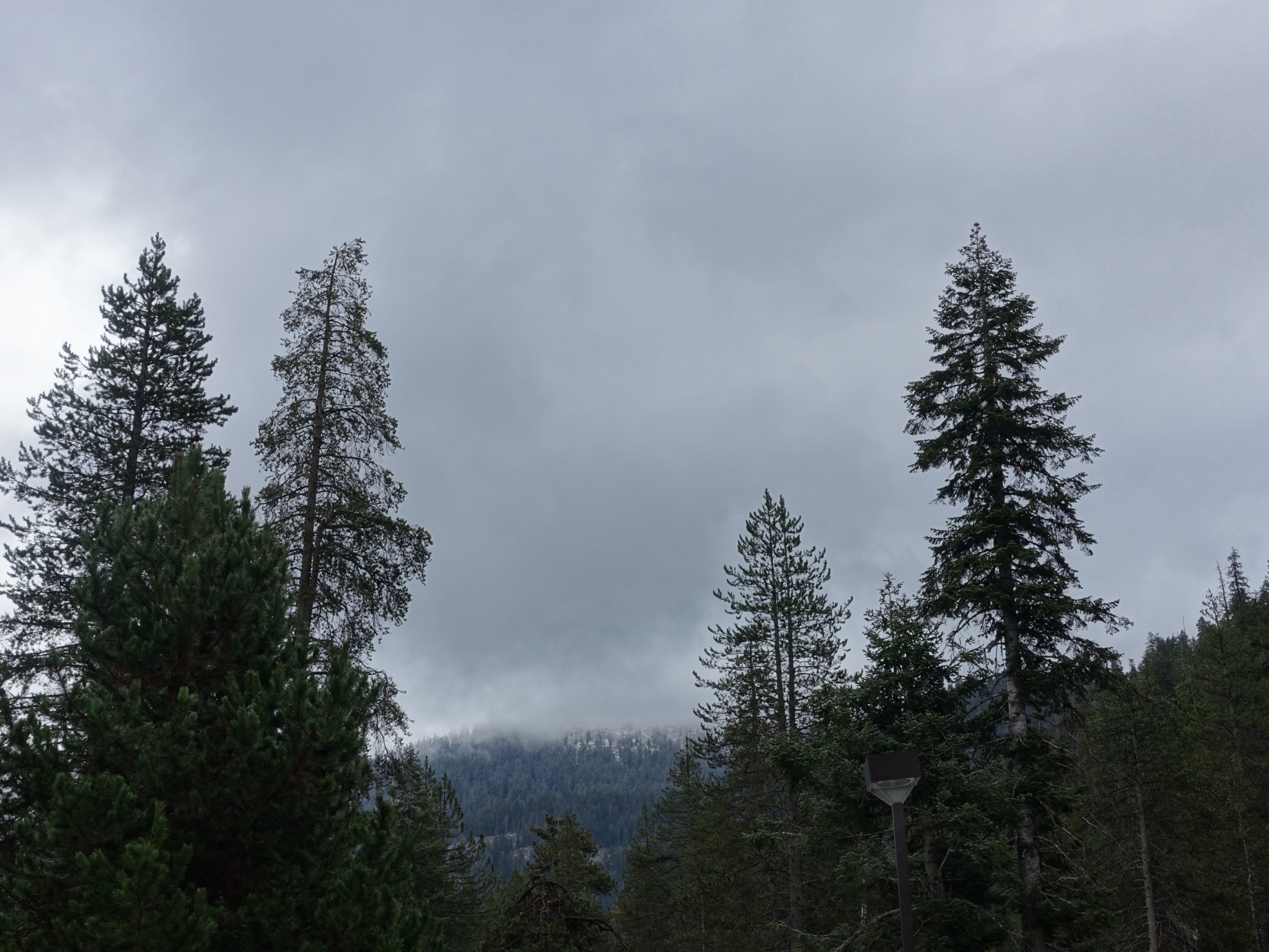 ![]() 1 After getting off the trail the night before, we drove out to Stony Creek and stayed at a small lodge there. We woke to a light rain and snow on the peaks around us. Looks like we timed our five days on the loop perfectly. It was definitely great to see fresh snow though. Here's hoping for a wet winter! Now we're on our way to see the General Sherman tree. |