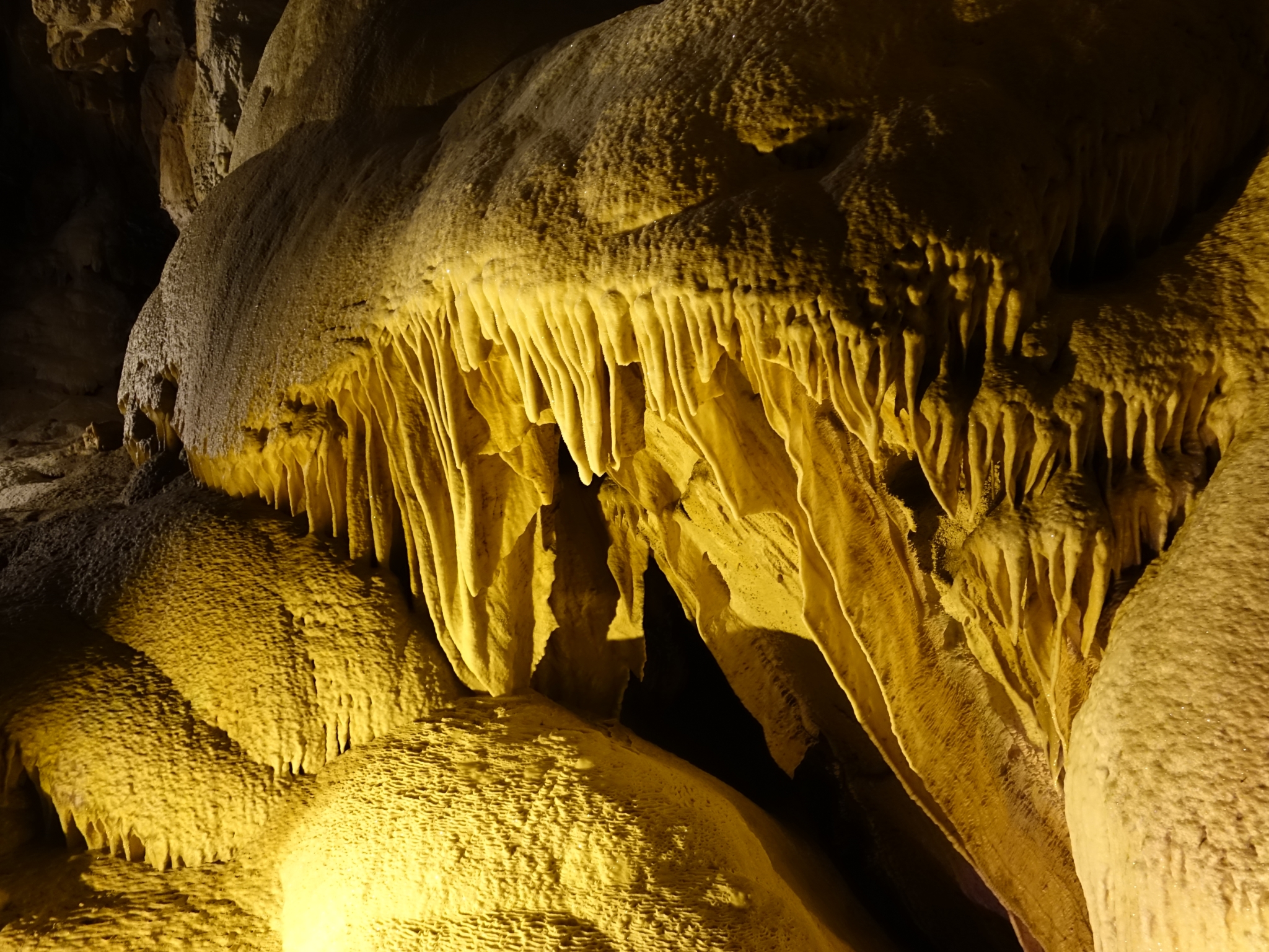 ![]() 11 Amazing stalactite formations. The lighting is all from carefully placed LEDs along the walkway. Otherewise, it would be pitch black. |