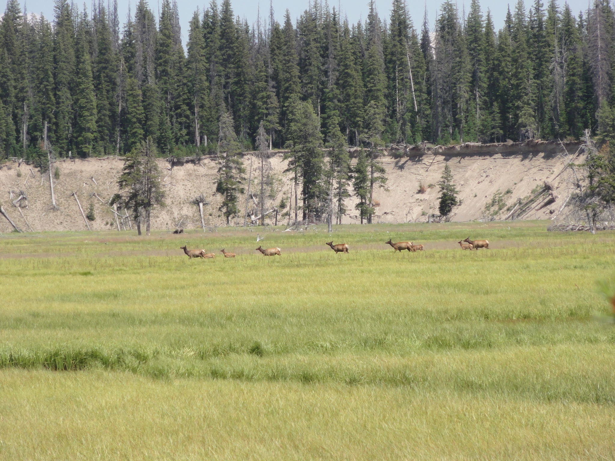 2 There were several great, scenic turnouts along John D. Rockefeller Jr. Highway 89 heading South through Yellowstone. Here I spot a small herd of Elk running across the meadow.