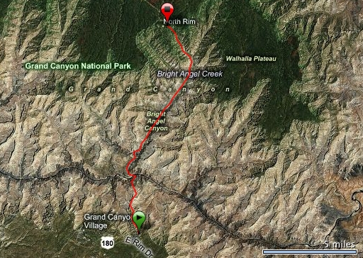 1 A Bing map for the first half of the run, from the South Rim down the South Kaibab trail to the Colorado River and then up the North Kaibab trail to the North Rim. GPS data is from a Garmin Forerunner 405 (whose battery only lasted to the North Rim).