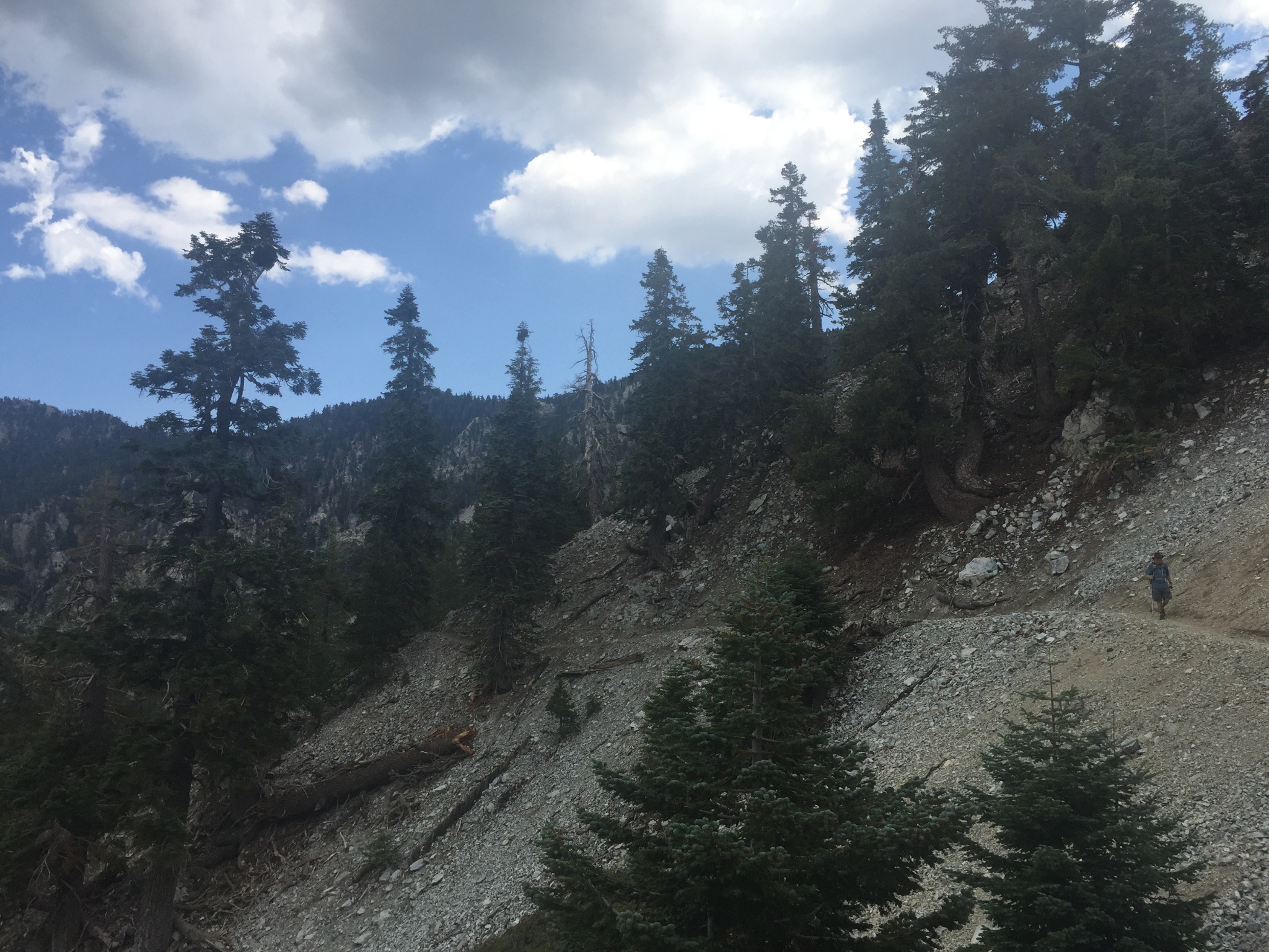 10 Just getting ready to start the last section of switchbacks to the peak when we hit our turnaround time. Our backup plan to pick the kids up from daycare didn't quite work out, so we ended-up having to turnaround just short of the summit. But some heavy clouds were starting to roll-in anyway, and this was not the place to get caught in a lightning storm.