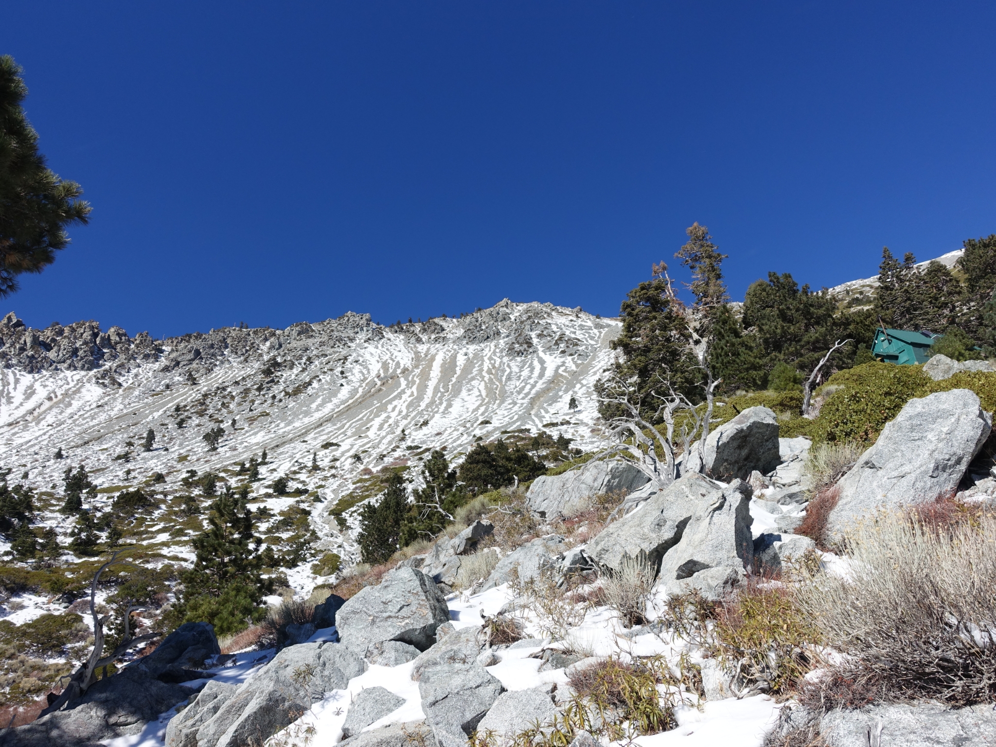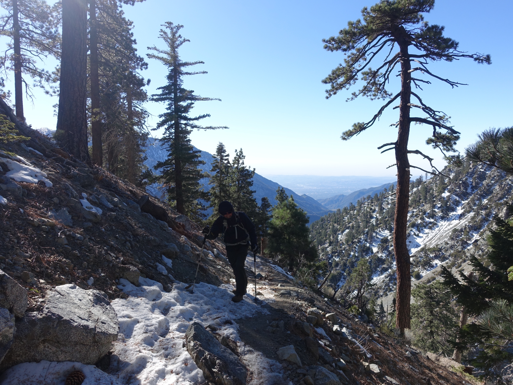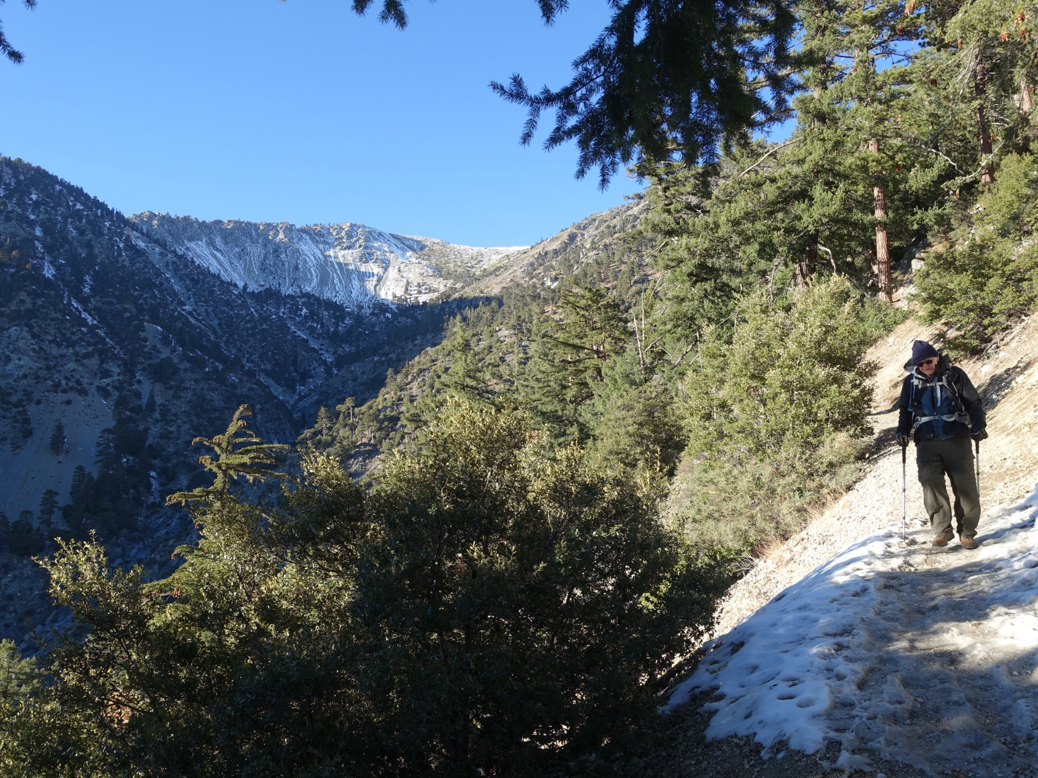 2 There had been a storm with a fair amount of snow the weekend before, but we didn't expect there to be much left. Yet we started hitting snow on the trail at just over 7,000'.
