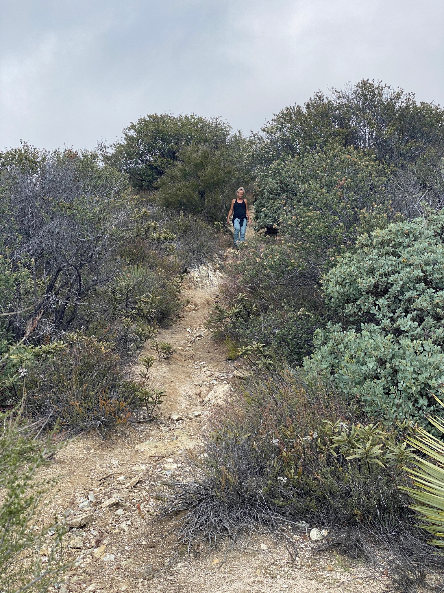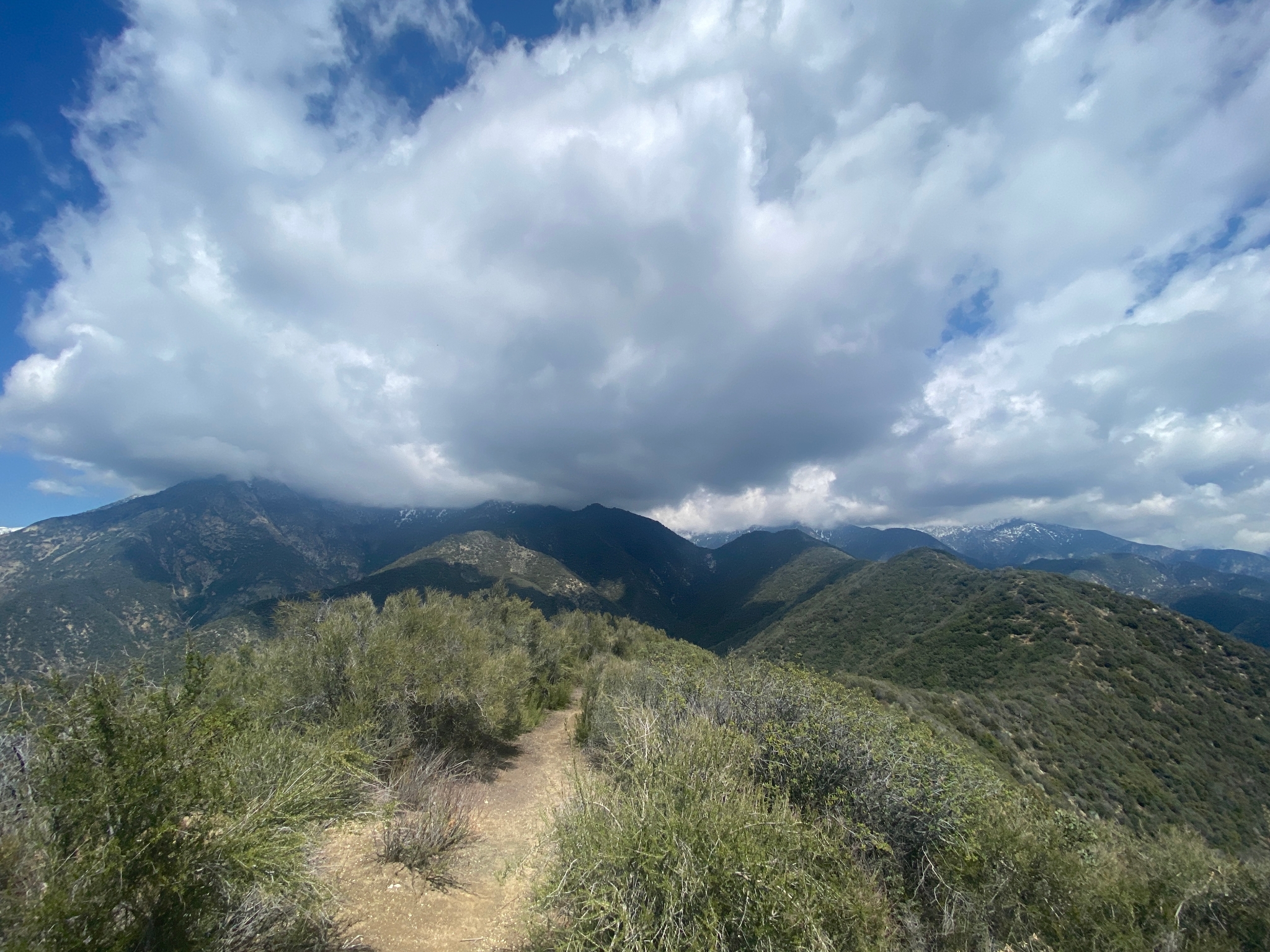 4/11/20 What started as a hike to Bridge to Nowhere was changed by unusually high water and strong current on the East Fork. Unable to make the crossing, we instead hiked Iron Mtn up to Heaton Saddle. A nice hike despite me being bitten by a little "yapper" dog!