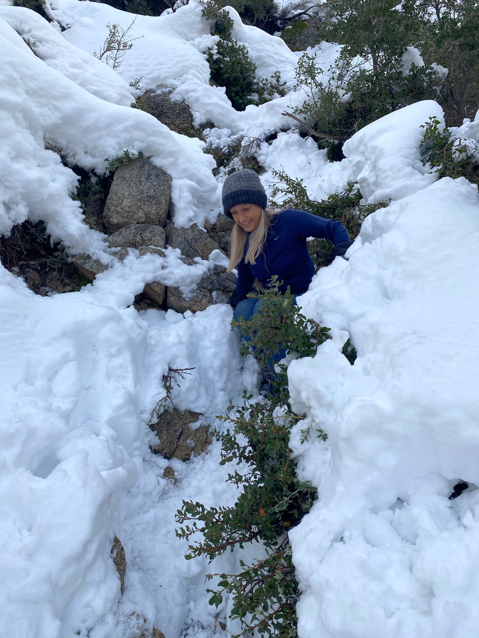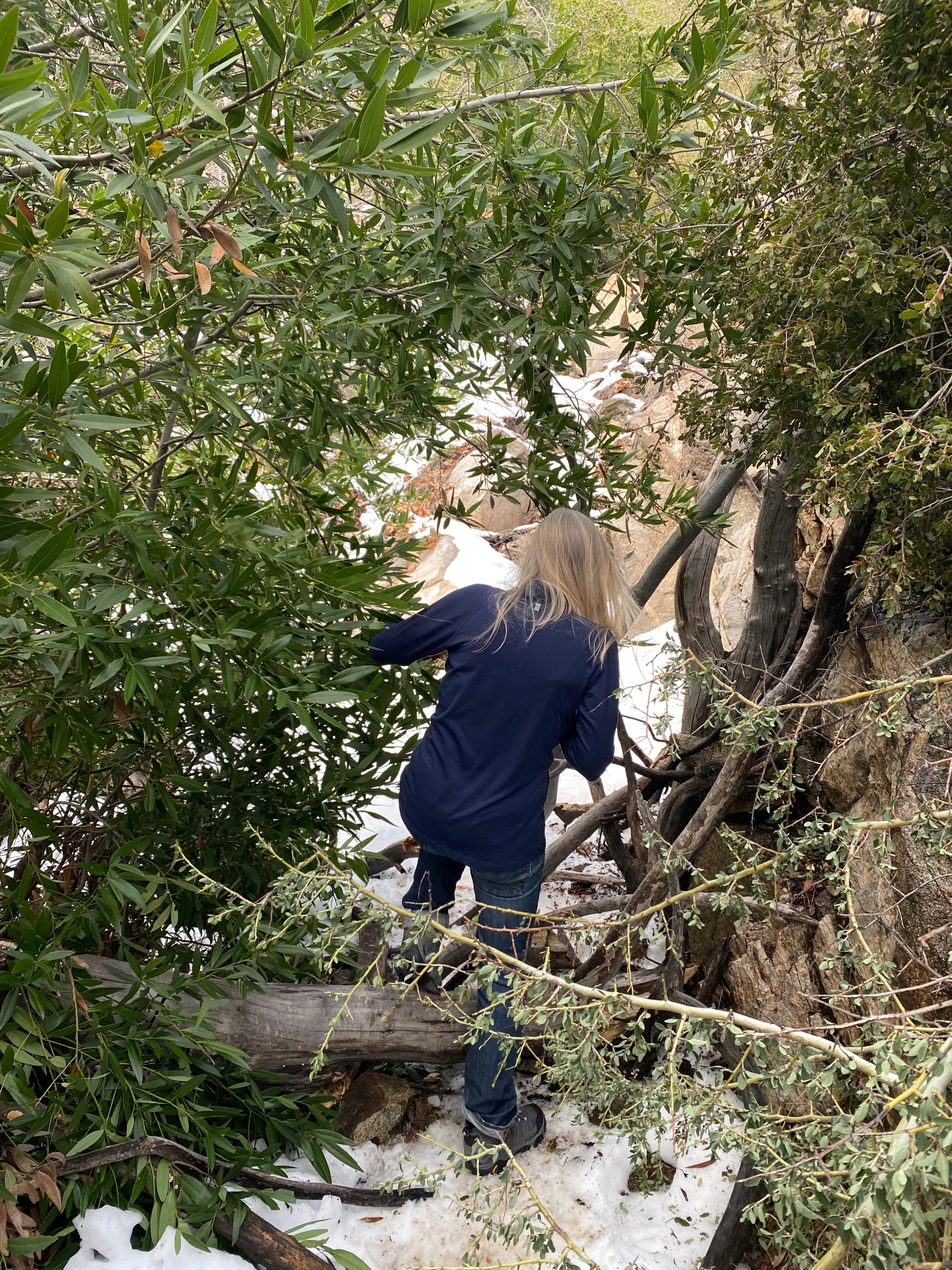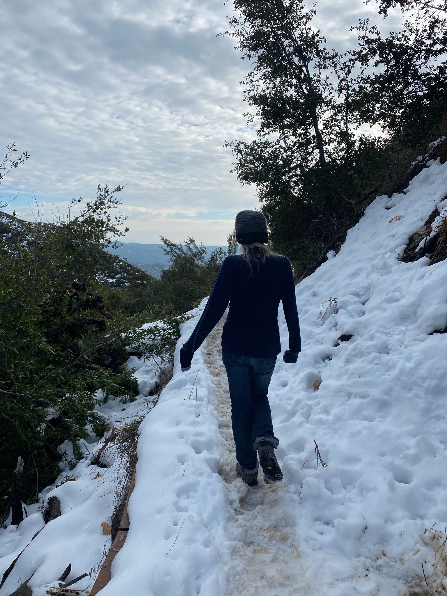 1 The snow level is about 3,000' with patches of snow starting almost right away. After trying to get to multiple trailheads, and giving-up because of insane holiday snow crowds, we were hapy to finally be on the trail.