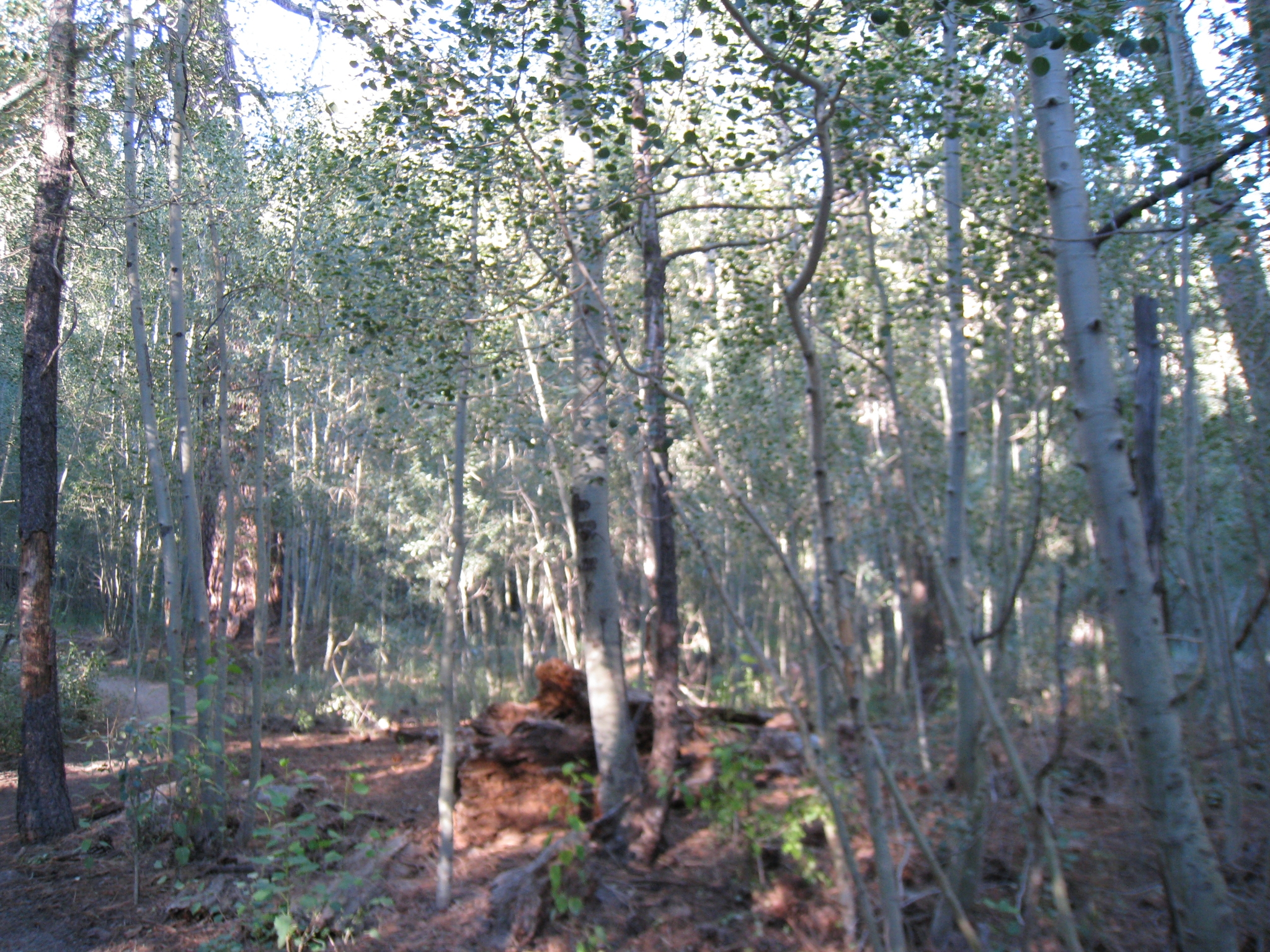 1 Up at 4:00am, out of the house just after 4:30am, at the trailhead just after 7:00am, and hiking by 7:30am. The trailhead is a couple miles up a rough dirt road called the 1N05. Definitely less crowded than the more accessible South Fork and Vivian Falls trails. Unfortunately, my camera is dying, so many of the pictures turned out a bit blurry. Time to invest in an outdoor proof camera. The trail starts in what is evidently the only Aspen Grove outside of the Sierras.