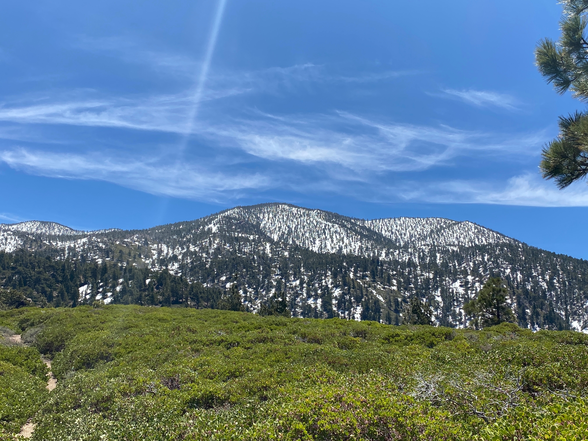 5/7/20 Almost 17 miles and 4,500' of gain up the San Bernardino Peak trail. There was too much slushy snow for a summit, so I tried some great new trail to Columbine Springs and Forsee Creek instead.