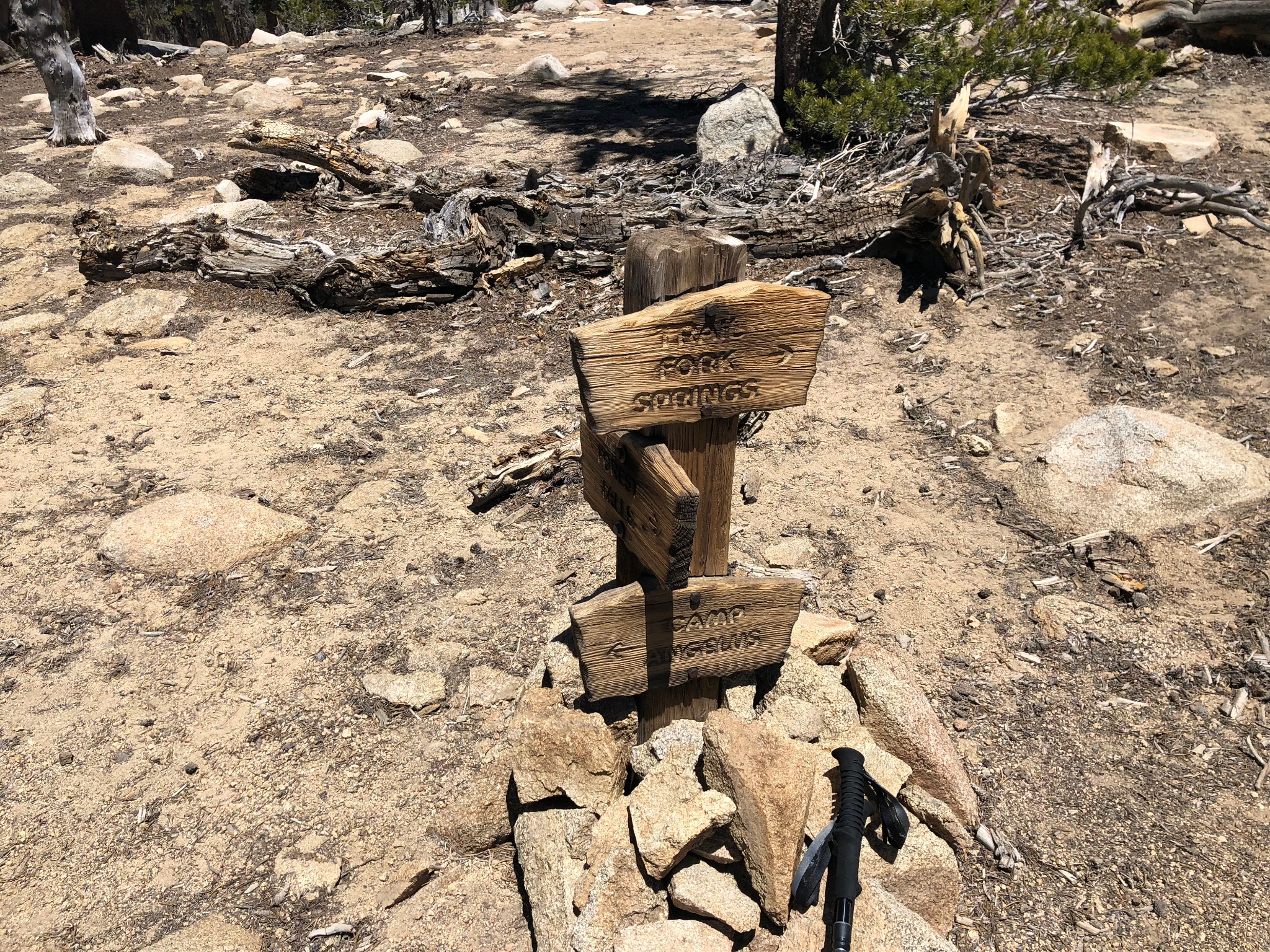15 Moving on quickly, I couldn't imagine there would be a nice sign like this at the top of the little use trail coming up from Momyer. So I mistakingly thought it was the next junction, which is the one that really goes to Trail Fork Springs. So I ended-up wasting around 30min heading a little ways down to Momyer and route finding on that unmaintained trail before realizing my error and getting back on track. This lost time officially ended my hopes of doing the full 40 miles for Gorgonio today.
