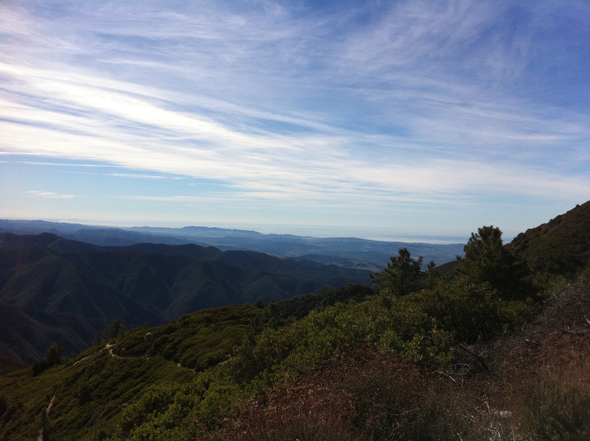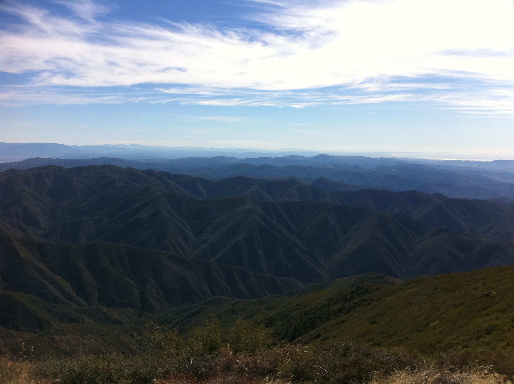 11/14/10 Another great run to the top of Santiago Peak, including the waterfall detour. 17 miles and 4700' of total elevation gain. Less water than usual on the Holy Jim trail, but still gorgeous.This time there was no marine layer shrouding the horizon, so the view from the top was amazing. Crystal clear ocean views from Santa Barbara to San Diego.