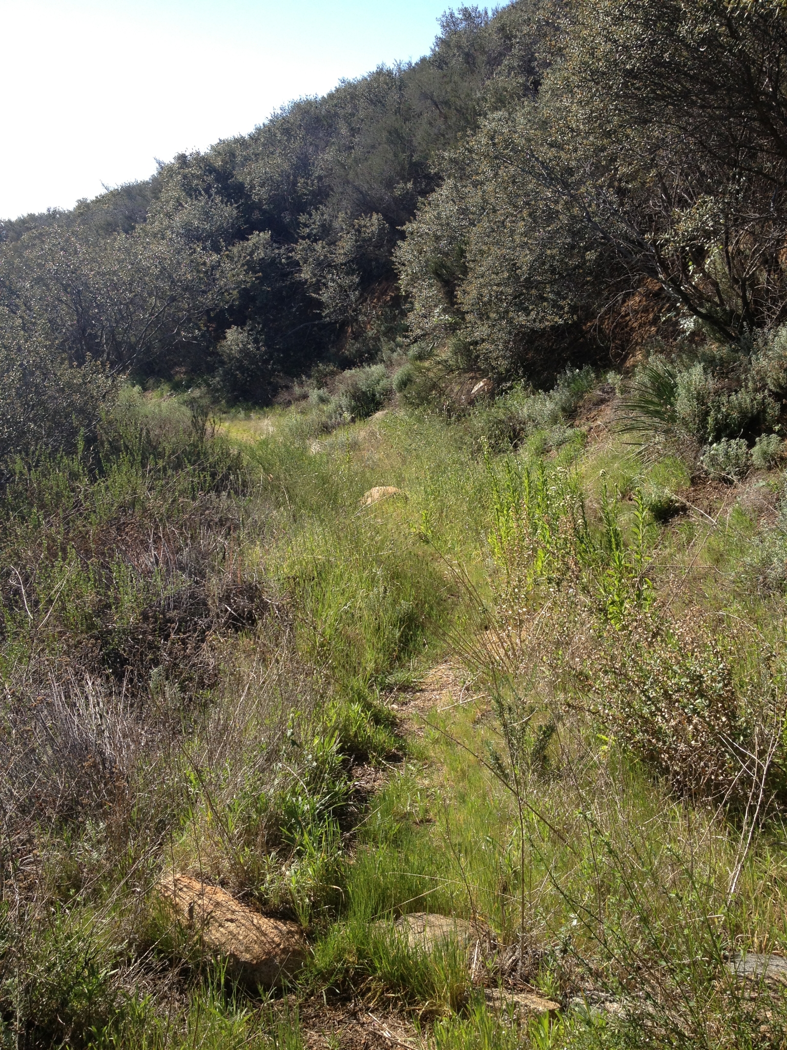 8 The trail starts getting back into taller vegatation as you near the bottom of San Mateo Canyon. The trail here is a bit of a slip and slide coming down.