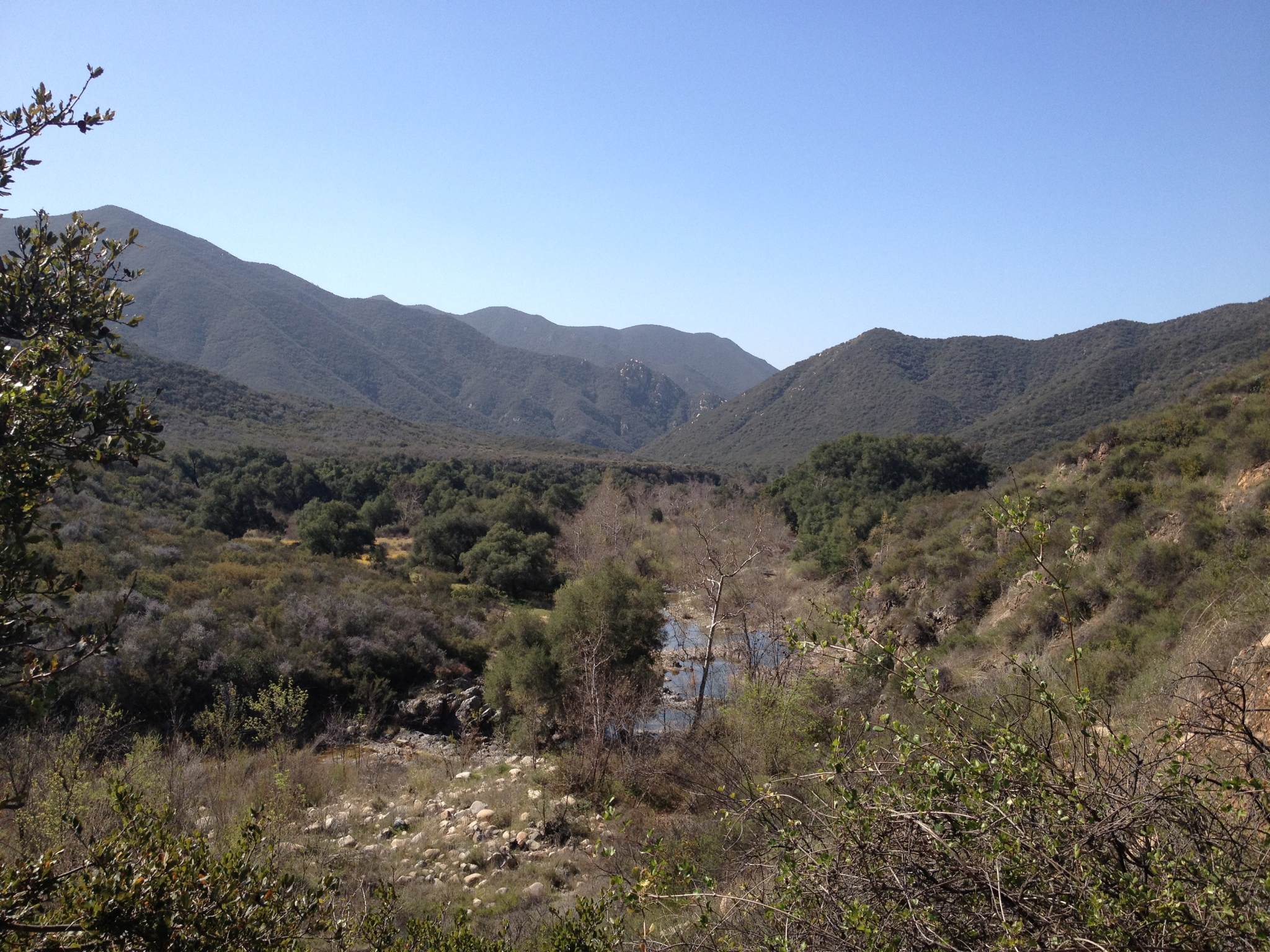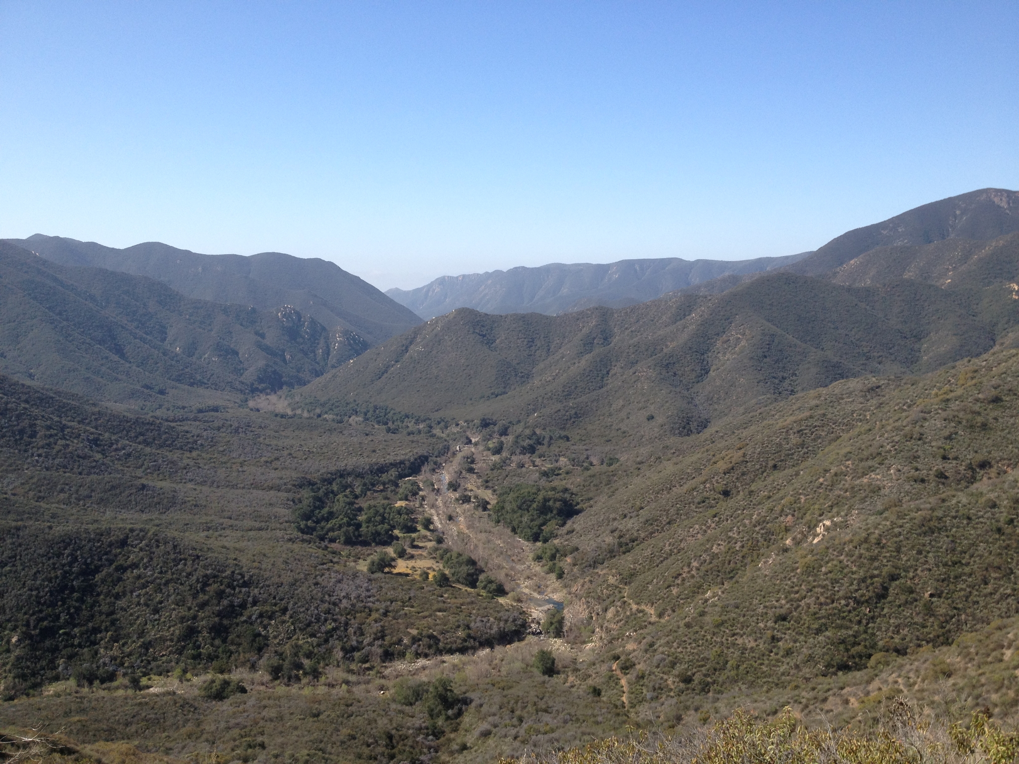 5 Dropping down into the canyon. You can see the trail winding down and then the San Mateo Creek bed at the bottom.
