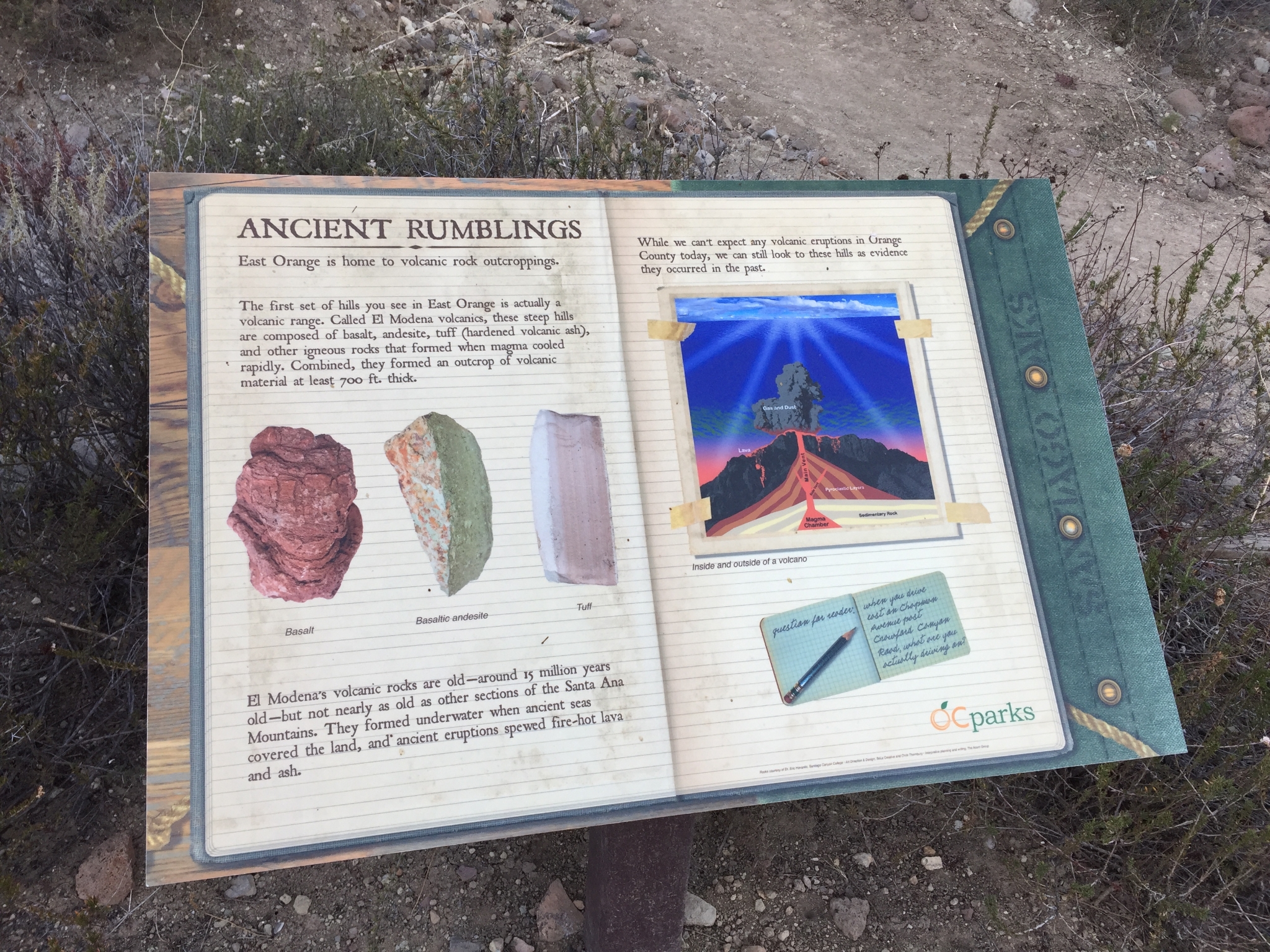 A small area in East Orange, the El Modena Open Space offers some fairly steep, technical single track, but is only good for about 5 or 6 miles. The hills here are formed from volcanic outcroppings. Who knew there were volcanos in the OC!?