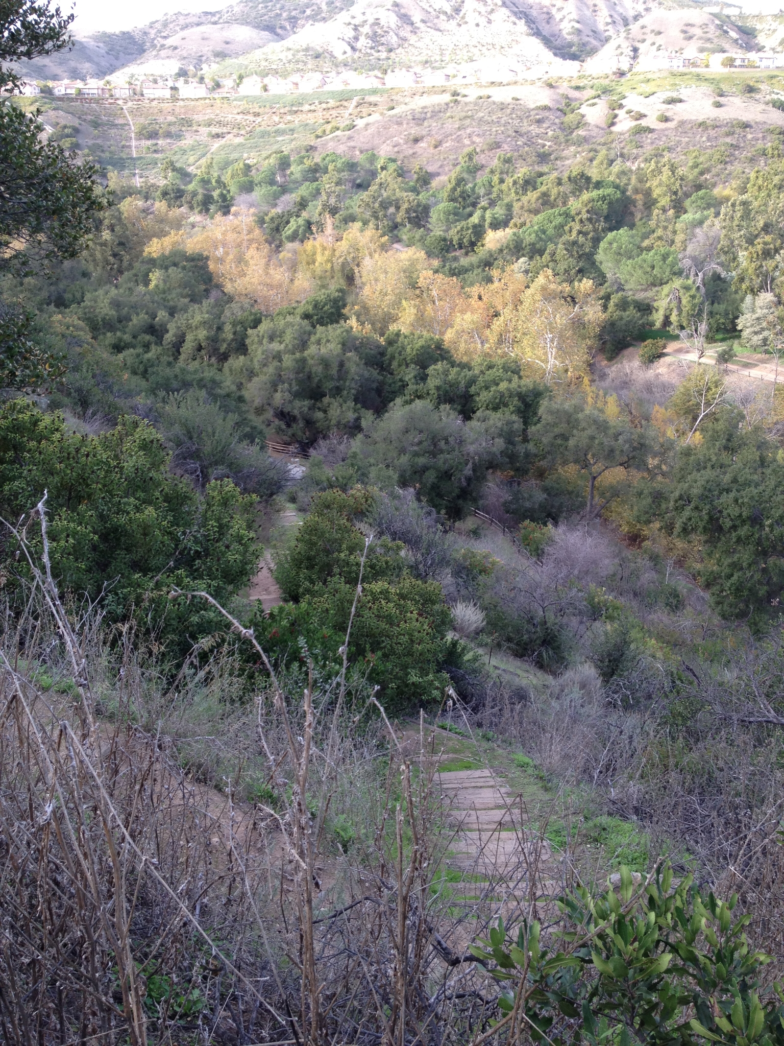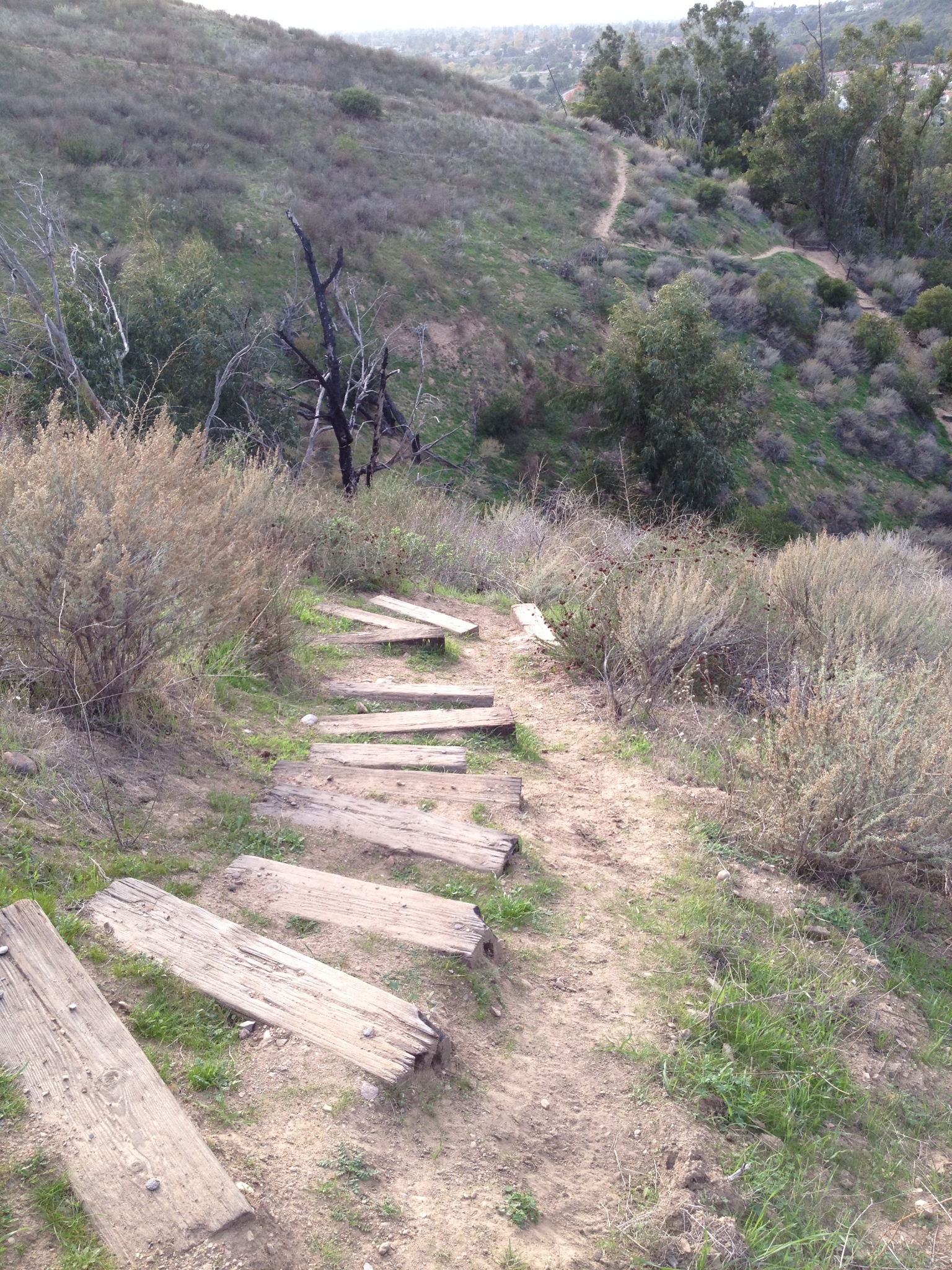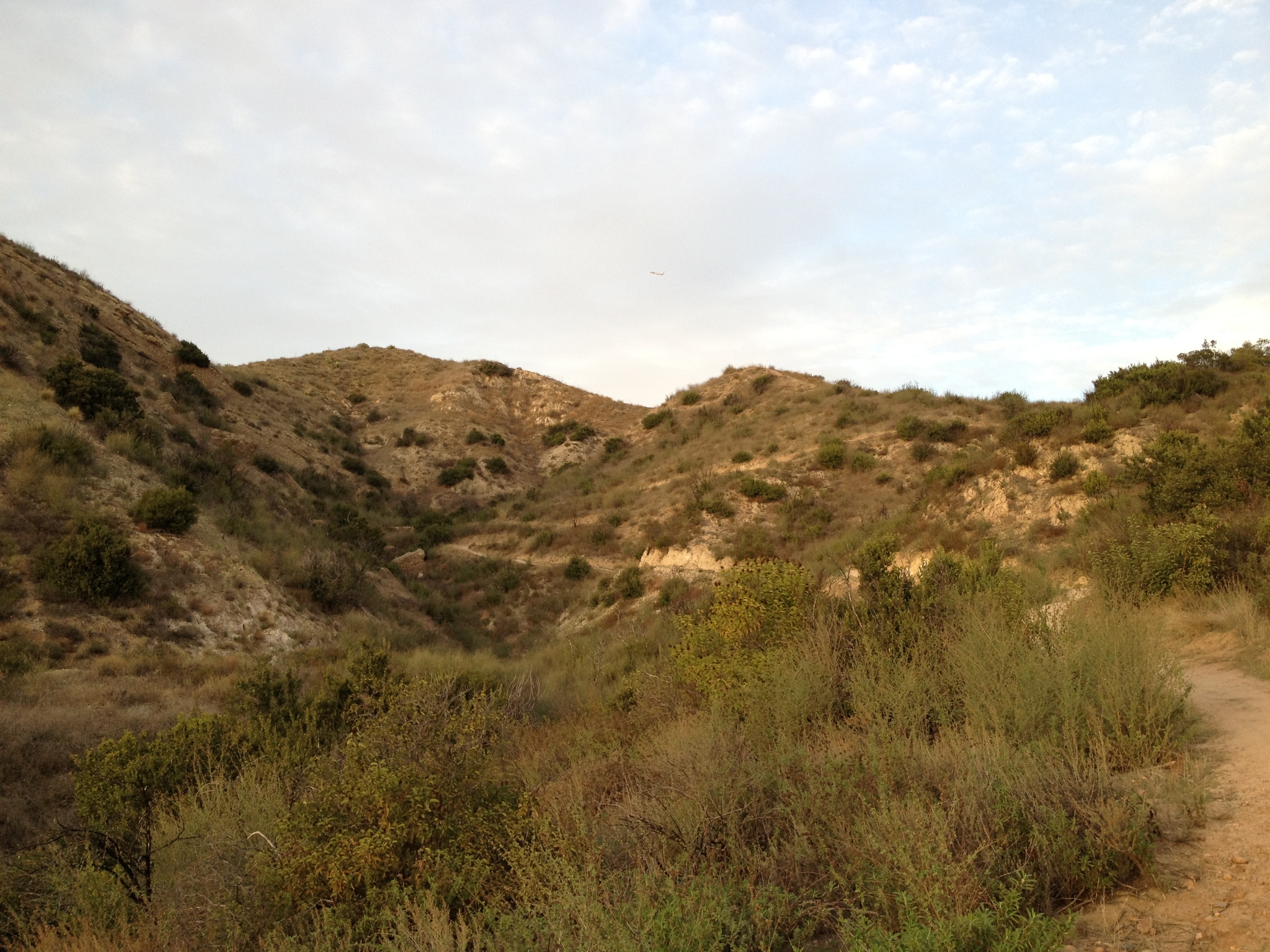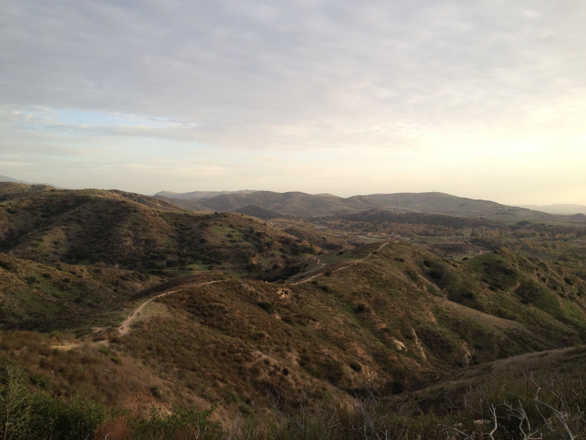 Not far from Peter's Canyon, Santiago Oaks is a great place for some steep, technical single-track. It's good for up to about 15 miles and 2500' of elevation gain. Unfortunately, most of the vegetation was destroyed in a huge fire a few years ago, but it's slowly but surely returning.