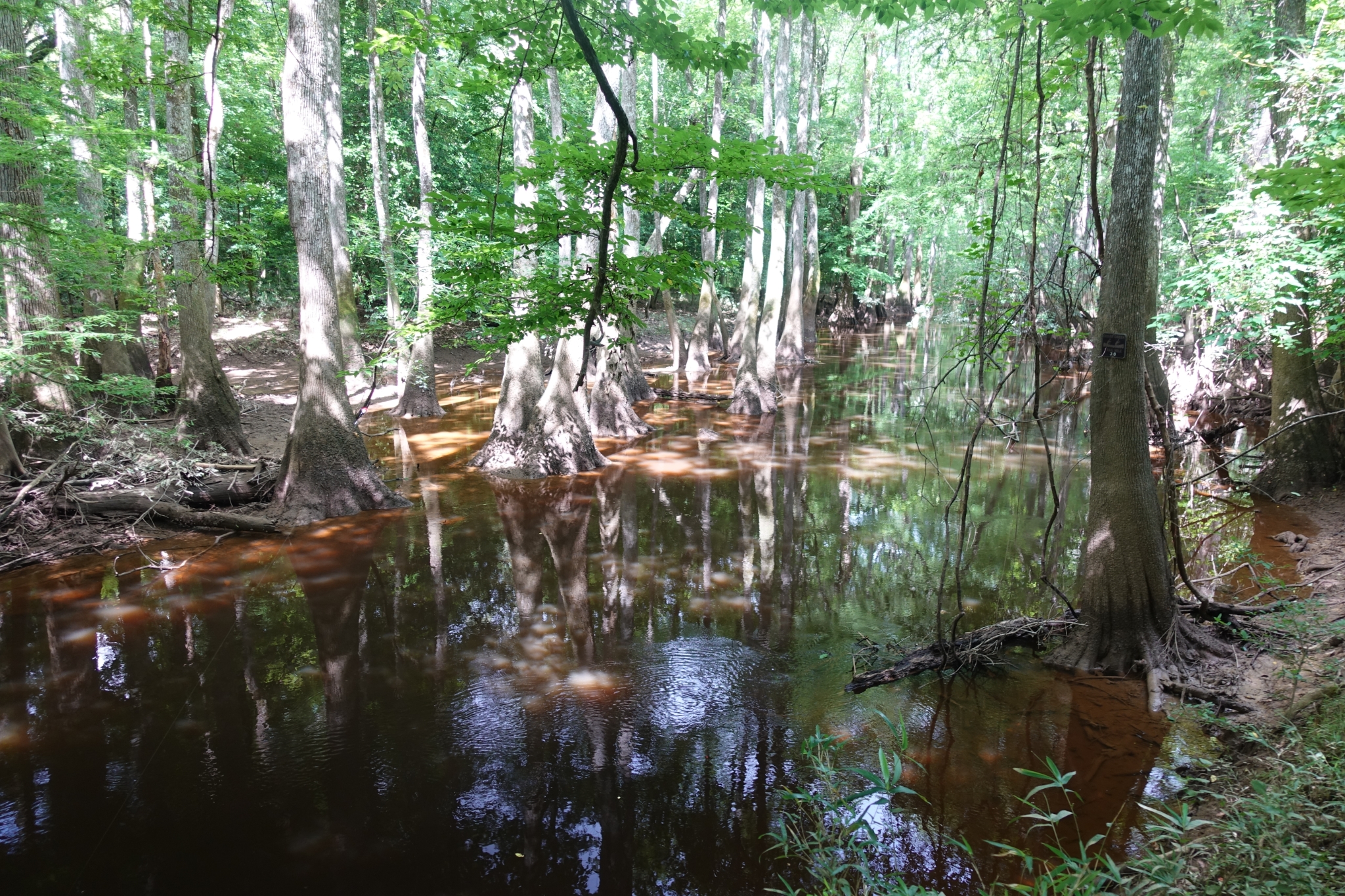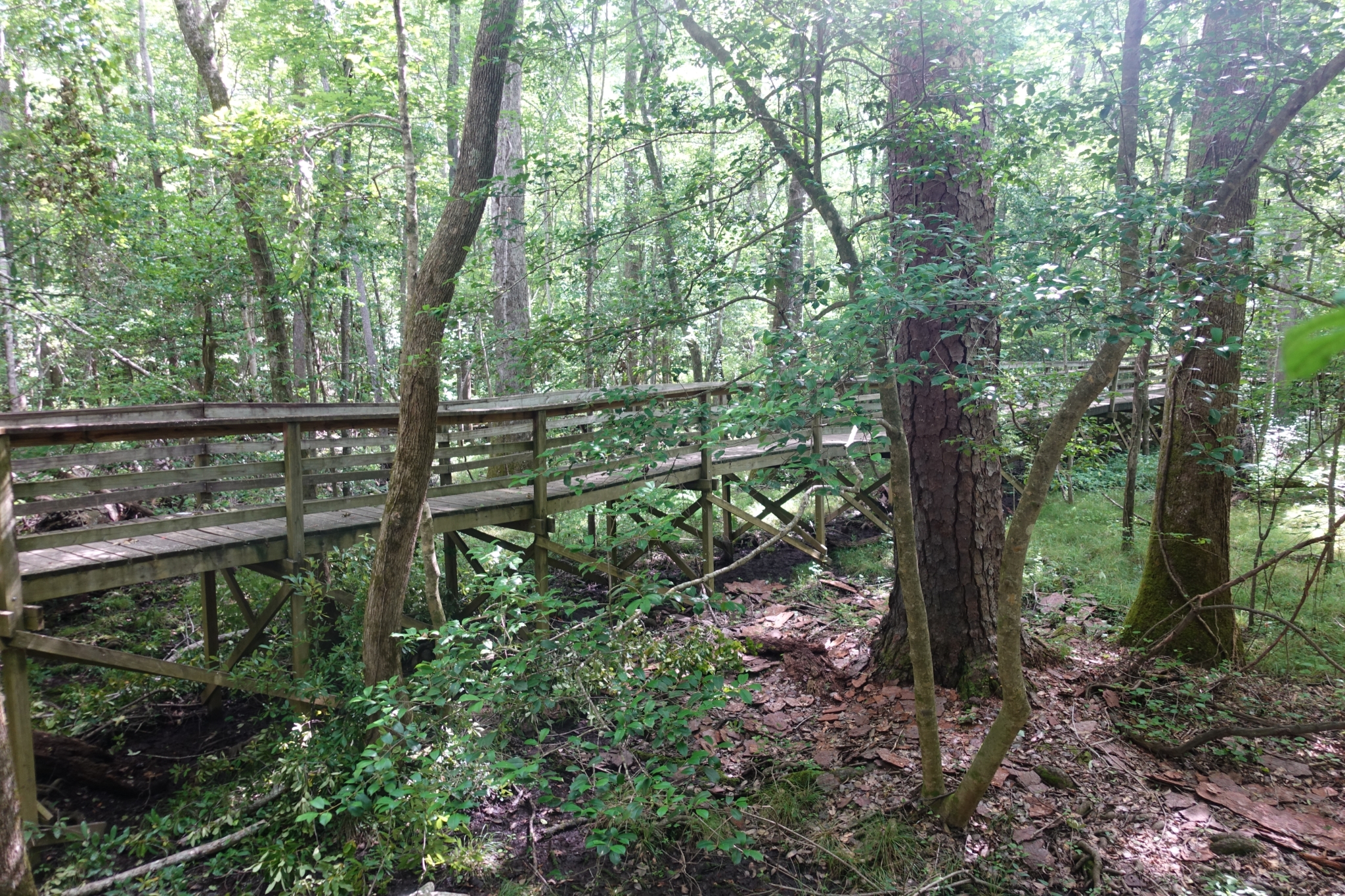 3 I really had no idea what to expect on the trail. I asked the ranger for some recommendations and then headed out. The trail starts on the boardwalk suspended a few feet off the ground. Congaree is a flood plain that is a few (to several) feet under water 10 times a year on average. It's basically a swamp that rises and recedes (and doesn't have gators). I timed it perfectly on a low water day.