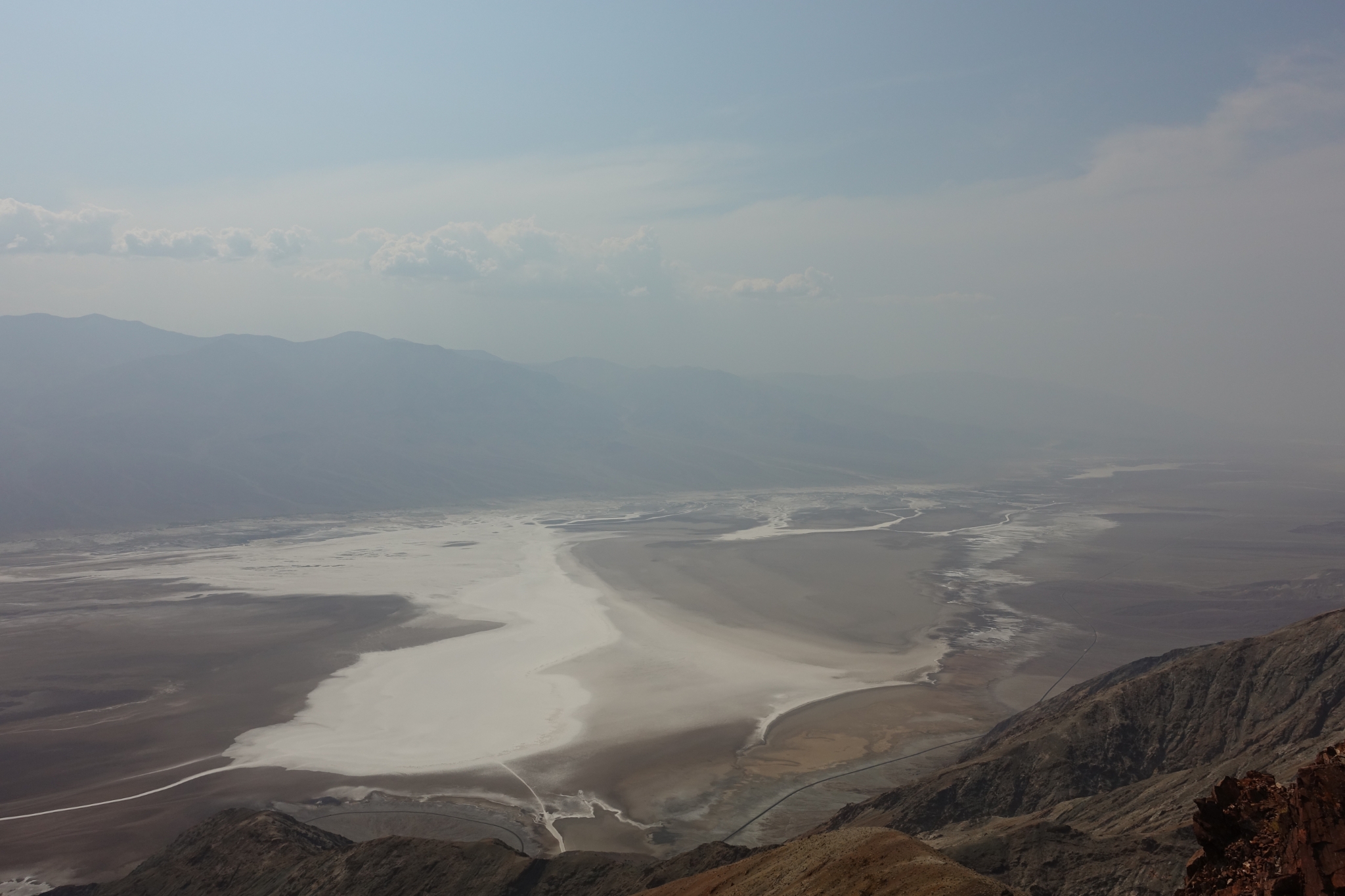 22 Next stop Dante's View. It's unquestionably the most dramatic view in the park. Almost 6,000' above Badwater Basin far below, it's a long drive up to this point, but well worth it. Telescope Peak on the other side of the basin is over 11,000' above the valley floor.