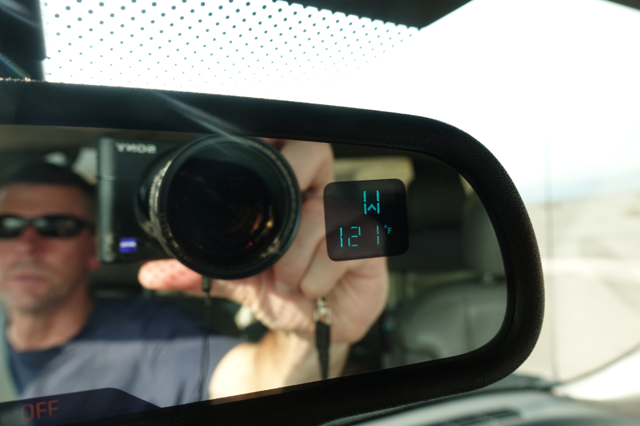 29 Heading back down towards the basin now, I just had to snap a pic of the car thermometer. Now up to 121 degrees!