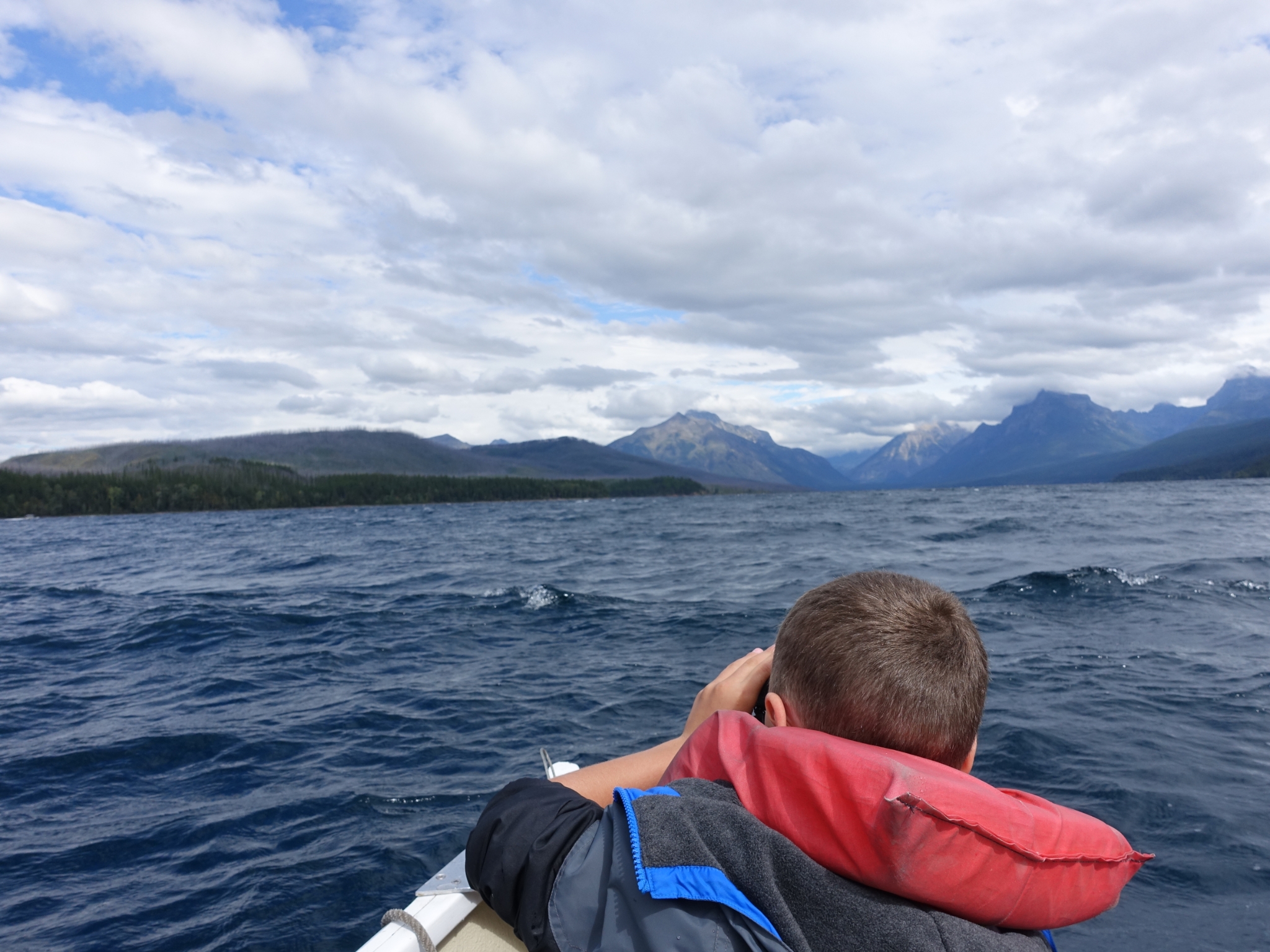 9 Then we headed out to Apgar Village on Lake McDonald for some rowing. Lake McDonald is normally very calm, but a storm was starting to come in, and the water was looking choppy.