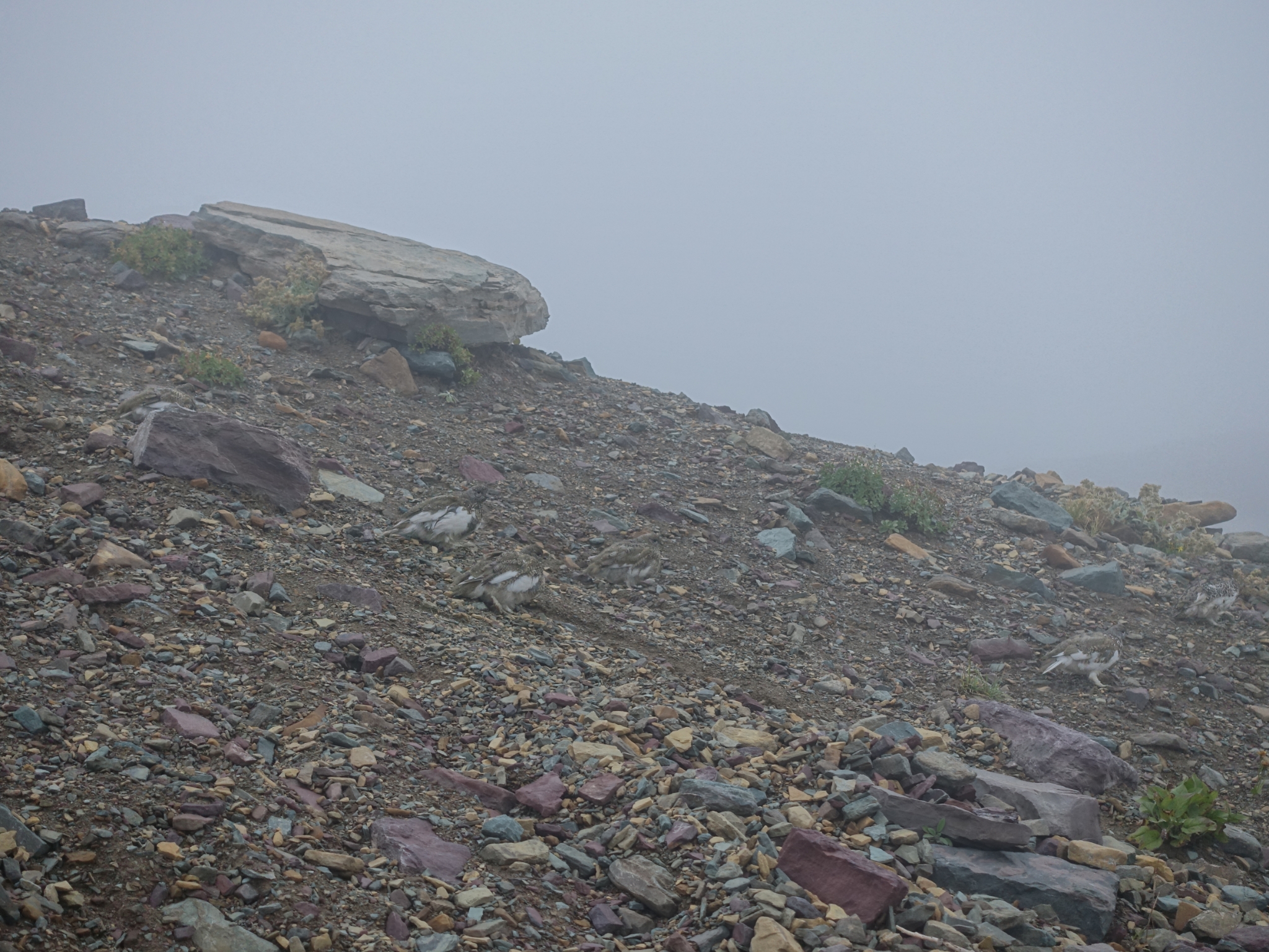 22 Very hard to see here because of their excellent camoflauge, but there are six Ptarnigans here. They're a relatively rare bird that makes their home in this area.