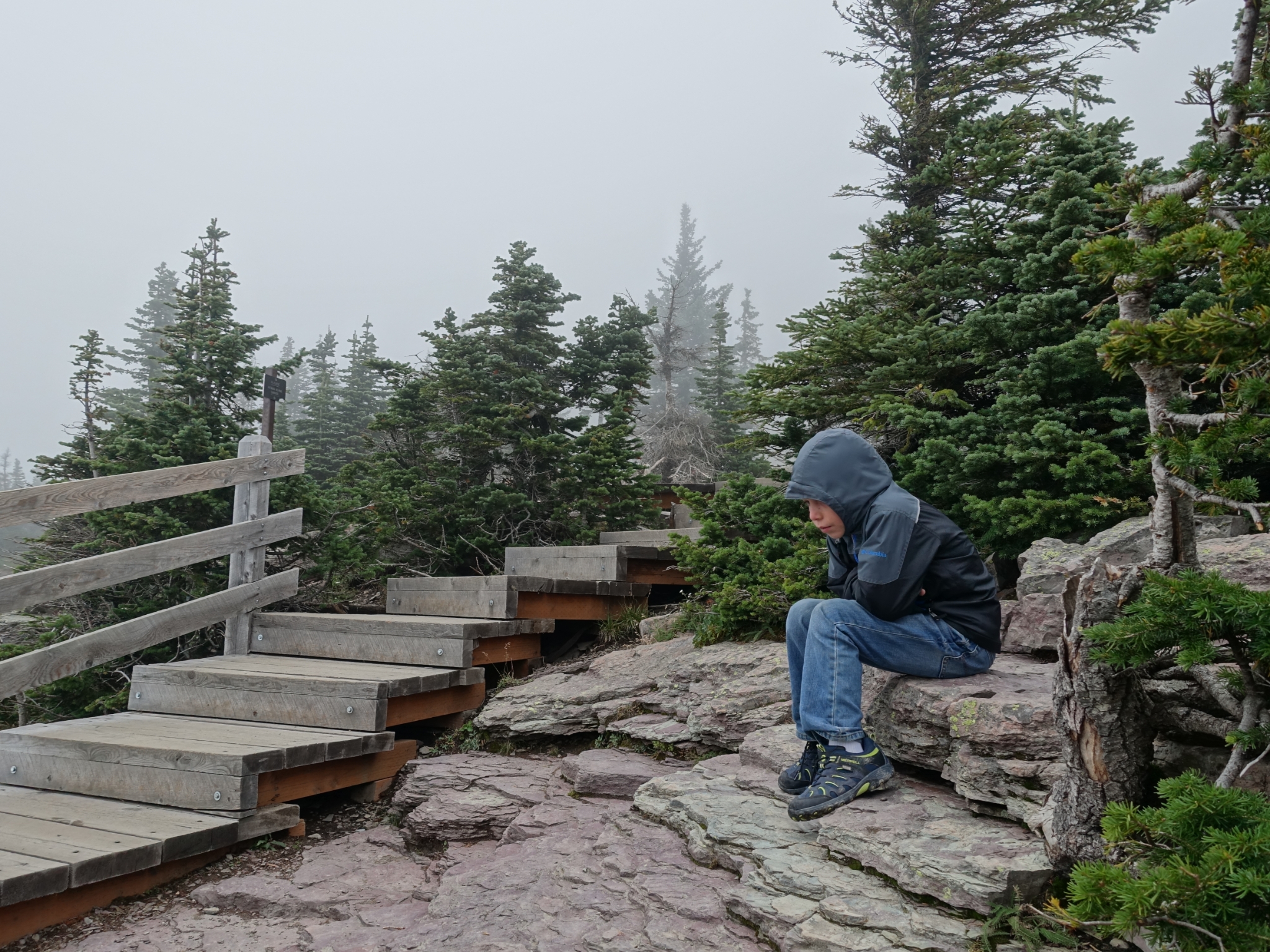 18 Then we headed back up to Logan Pass for a hike out to Hidden Lake. The storm felt imminent now, and the temp dropped into the low 30s, and probably much lower with the wind chill.