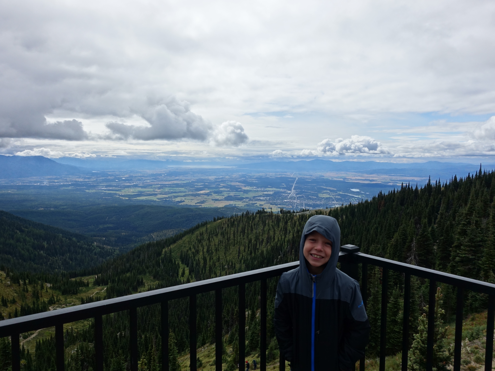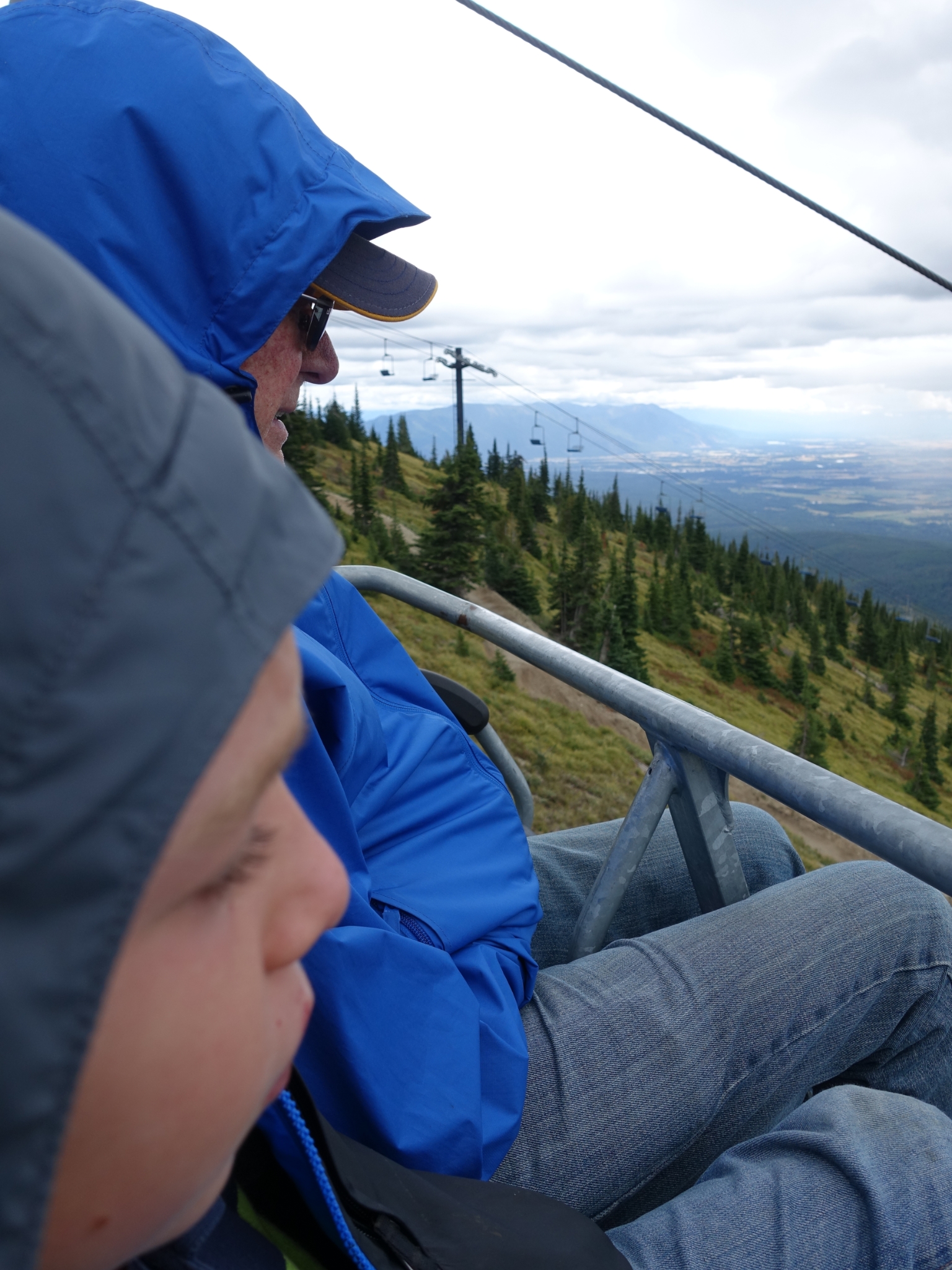 1 We started the day by heading out to Whitefish Mountain ski resort for a trip up the ski lift. It was Kyle's first time on a ski lift and was definitely the longest one I've been on at 17 minutes from bottom to top.