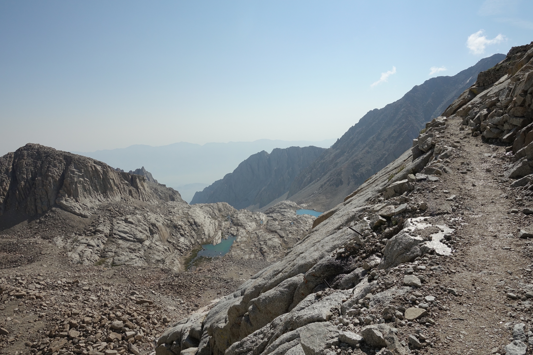 24 Made it to Trail Camp at 12,000'. Despite many, many summits of the local Southern CA mountains, this is officially the higest altitude I've been at in 15 years. Despite having had zero aclimation, I'm feeling pretty good. Not only did I not do a practice hike at altitude the day before, I didn't sleep at altitude at Whitney Portal the night before, and I was at the lowest point in North America the day before. I was very curious to see how the climb to 14,000' would go. The switchbacks is where the altitude really hit me the first time I was up here.