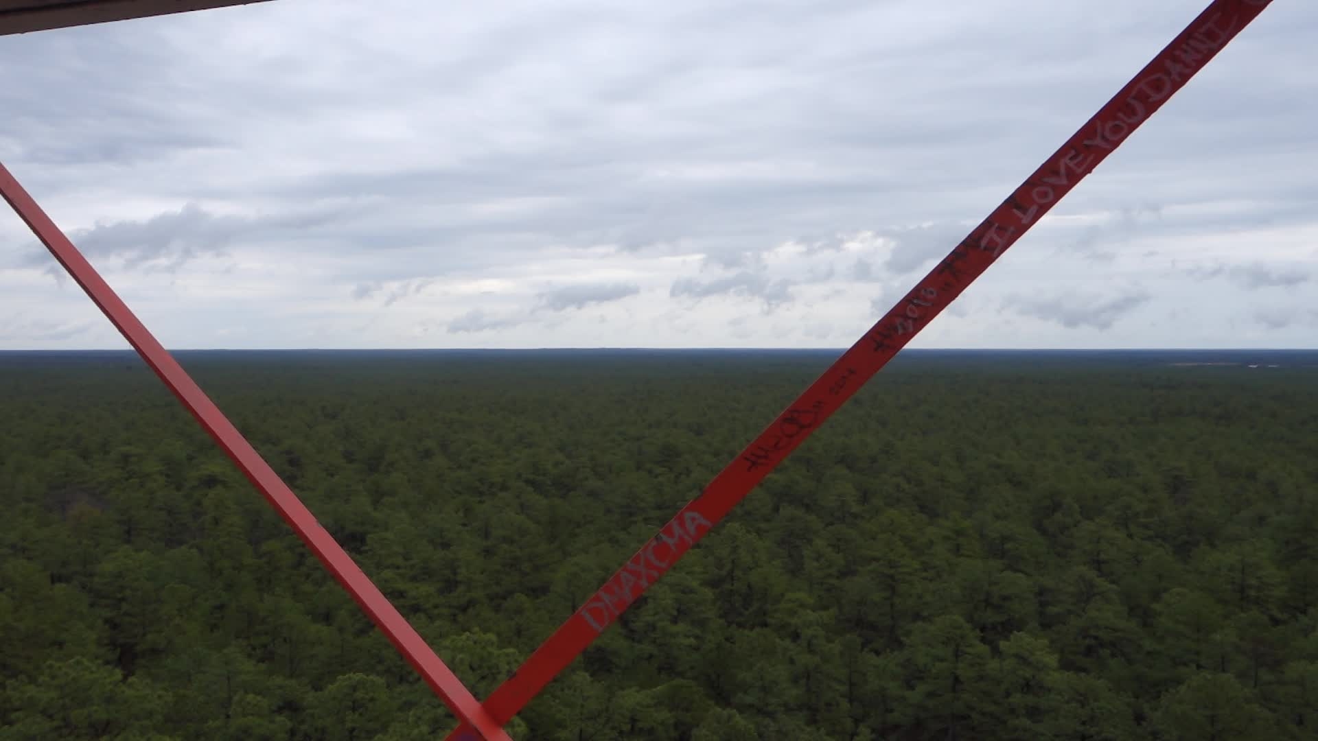 10 Made it to Apple Pie Hill, the highest point in the entire Pine Barren region at only 205' above sea level. Because the land is so incredibly flat, the hill here makes for an excellent fire watch position. This tower is evidently manned daily throughout the fire season, but is empty today. If you read online, it seems to be a bit of a local ritual to climb this thing.