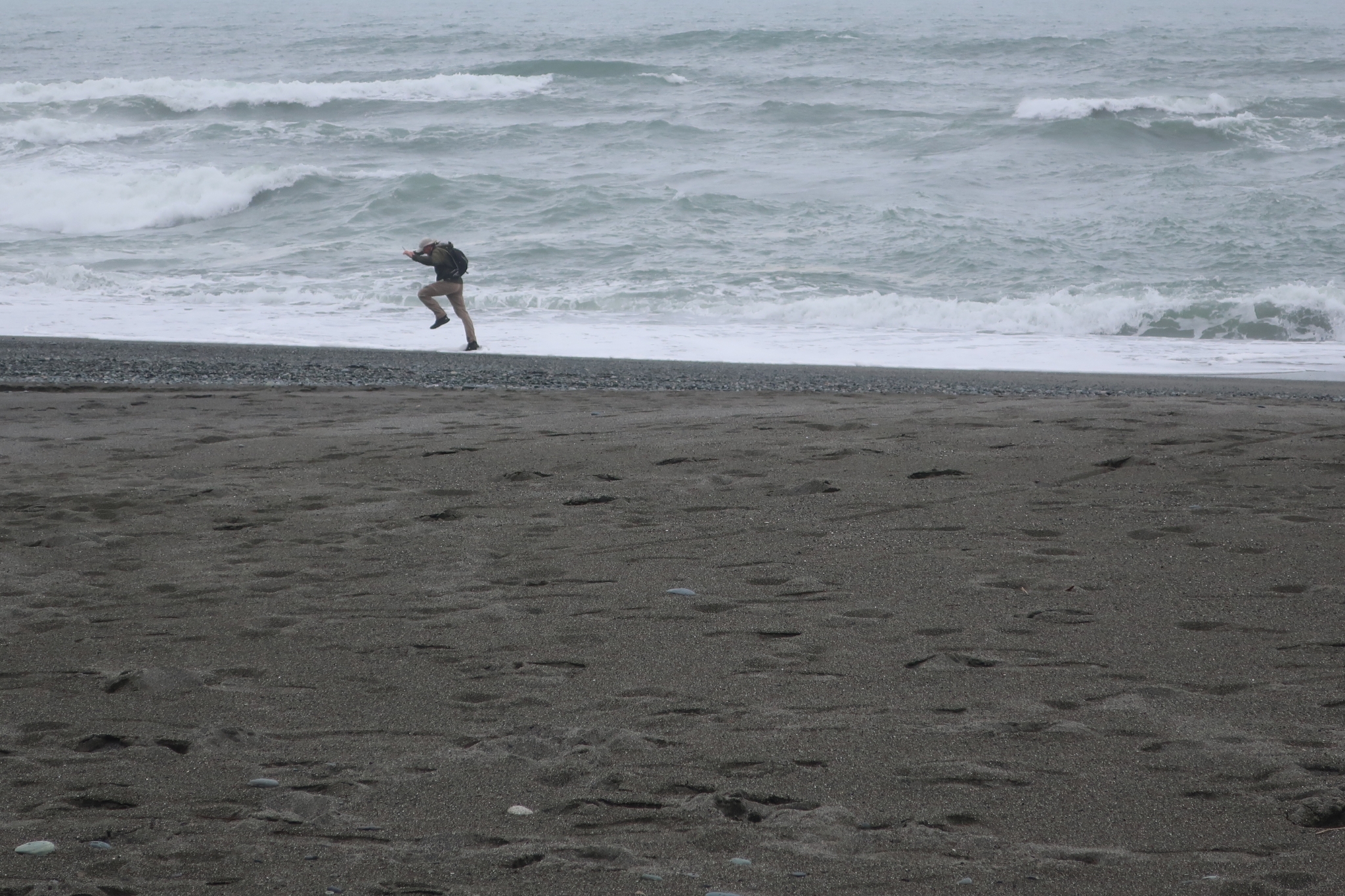 19 Almost to the coast. Dad crosses the creek just before it empties into the ocean. This area is accessible by tourists, so we see a lot more people here.